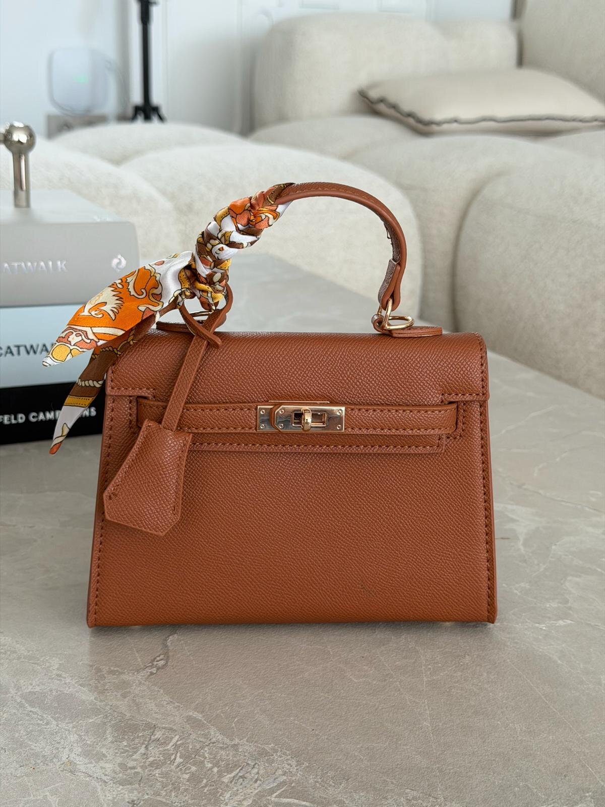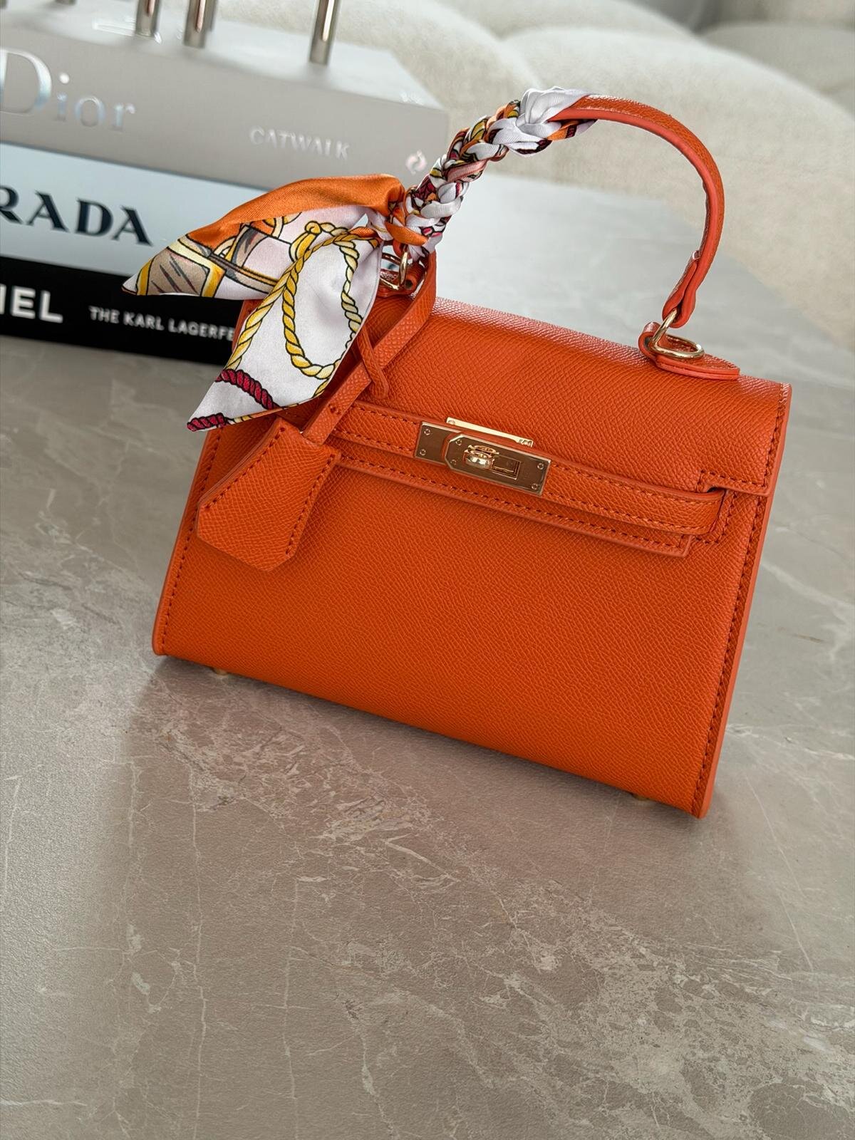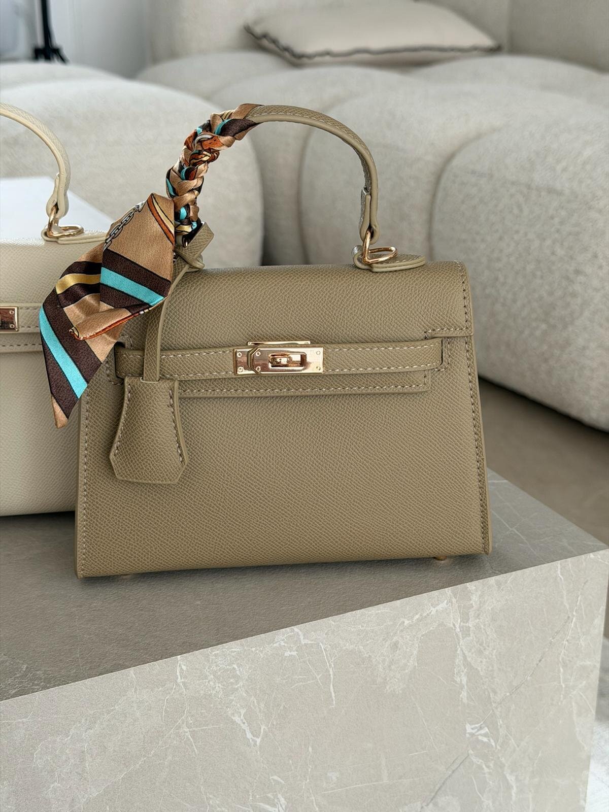 Elegancka bia艂a torebka damska mini typu Kelly ze z艂otymi okuciami i ozdobn膮 apaszk膮 przy r膮czce. Stylowy, ponadczasowy model idealny do eleganckich i codziennych stylizacji.
