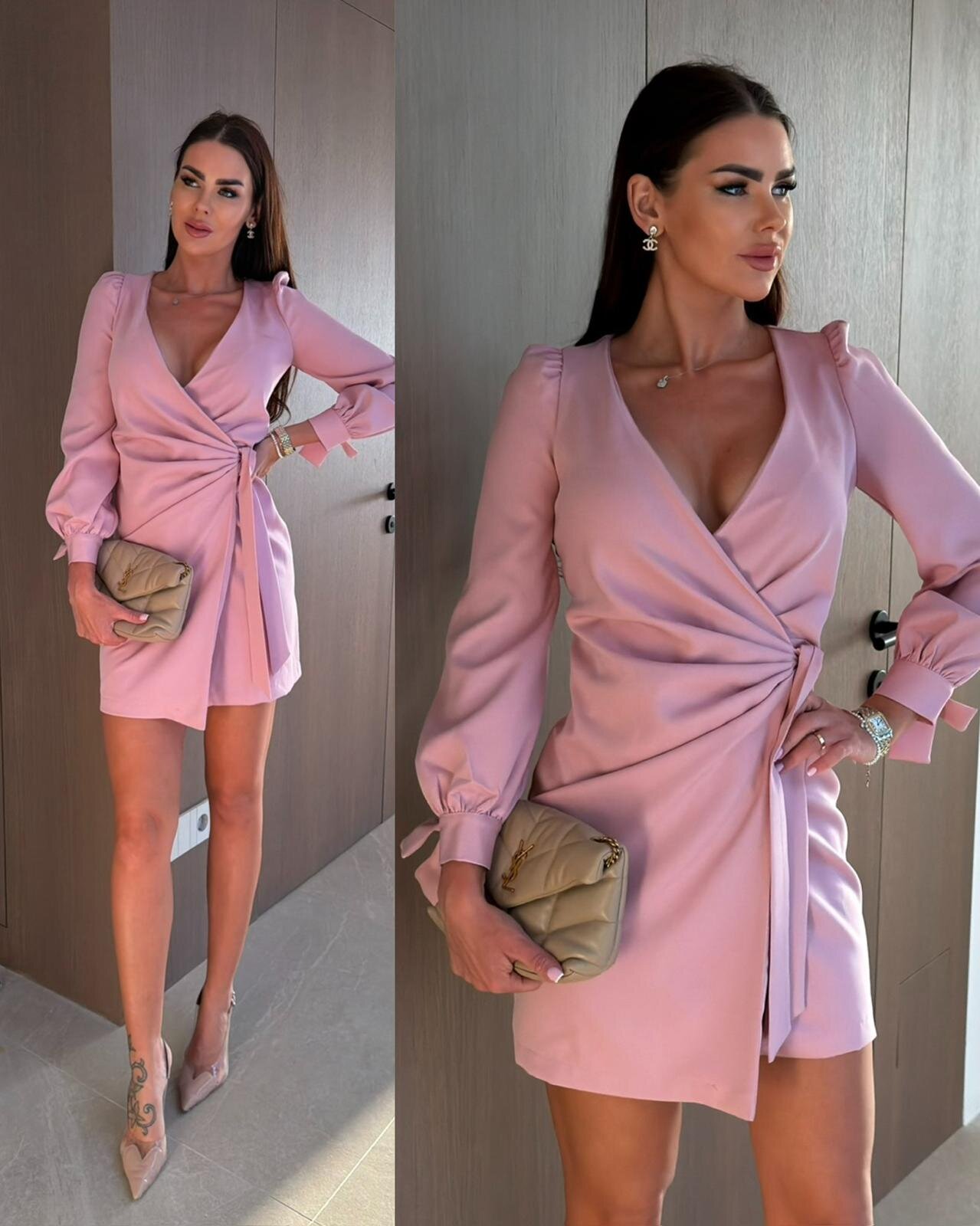 Sukienka Noelle to stylowa i kobieca propozycja dla kobiet, które cenią elegancję połączoną z wygodą. Model o kopertowym kroju pięknie podkreśla sylwetkę, a efektowne marszczenie w talii nadaje całości wyjątkowego charakteru. Dekolt w kształcie litery V optycznie wysmukla szyję i dodaje subtelnej elegancji. Długie rękawy z delikatnym marszczeniem podkreślają klasyczny styl sukienki, dzięki czemu model doskonale sprawdzi się na przyjęcia, randki oraz eleganckie wyjścia.