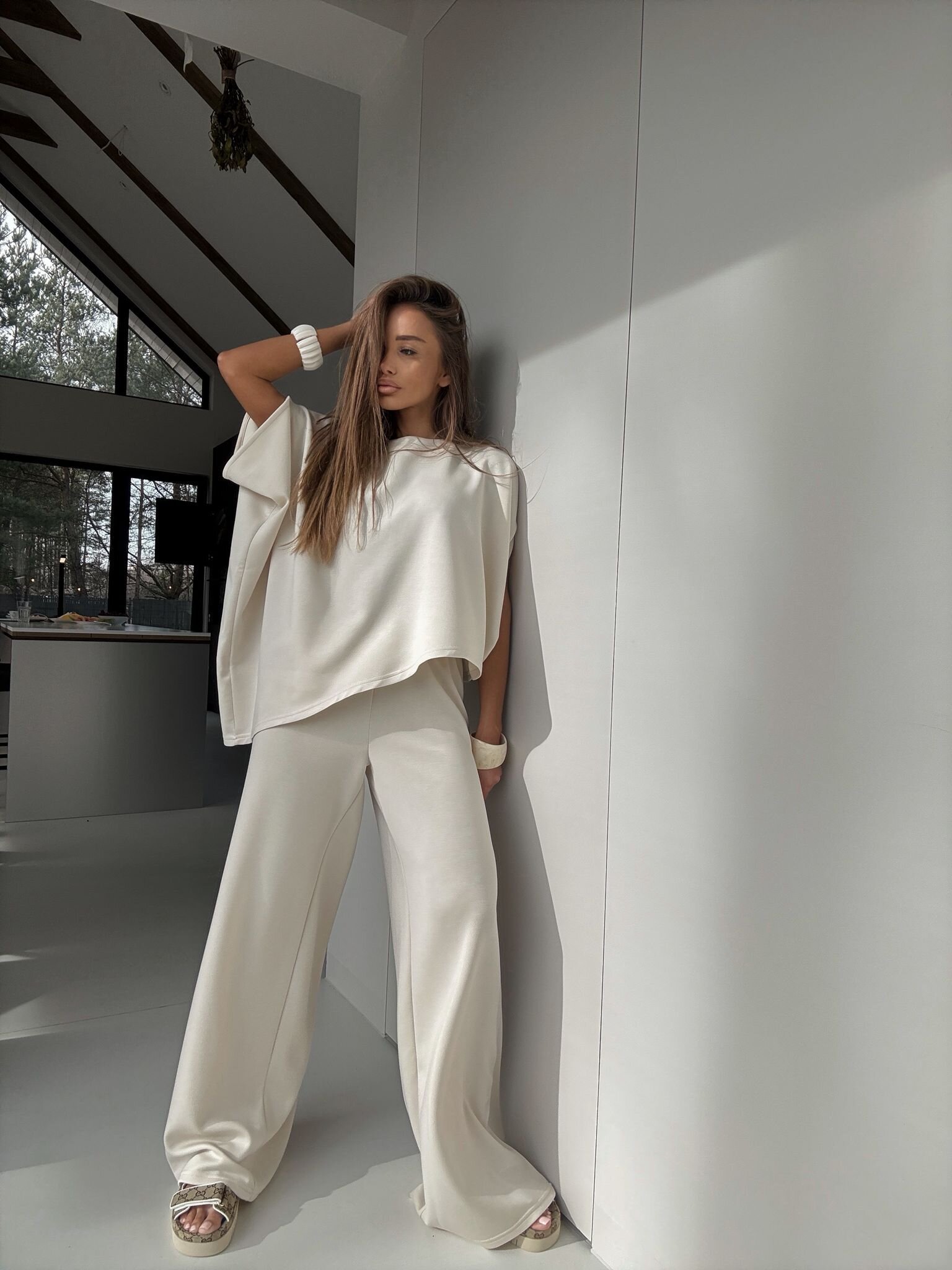 - straight-cut wide-leg trousers