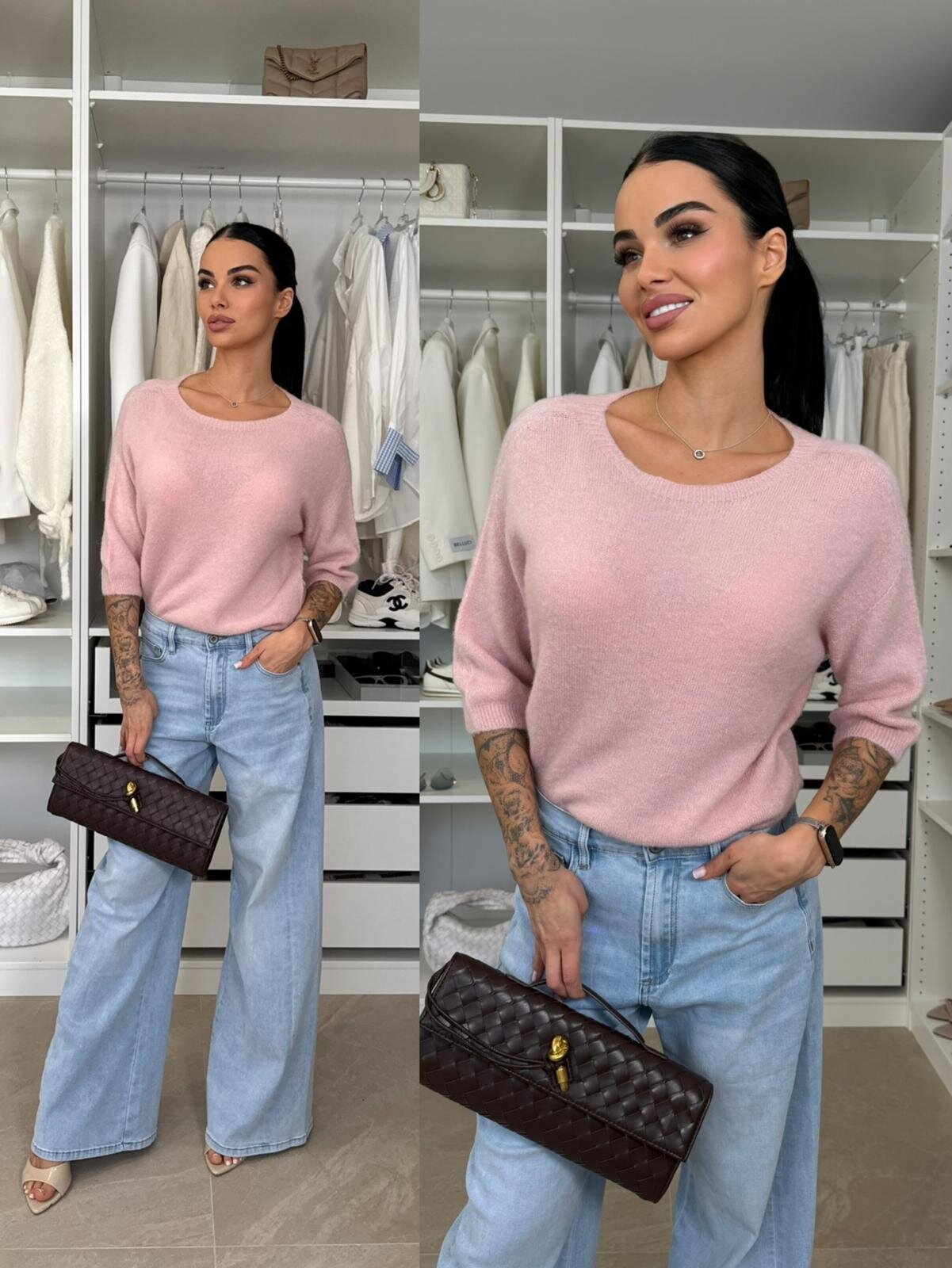 Sweter Essenze to 艣wietna baza stylizacji. Wykonany z jako艣ciowej mi艂ej w dotyku tkaniny. Idealnie zaprezentuje si臋 w zestawieniu z sp贸dniczk膮 czy ulubion膮 par膮 jeans贸w.