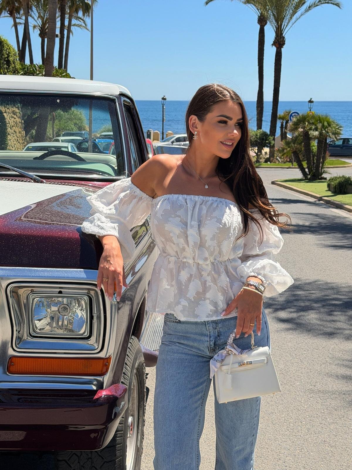 -modna bluzka typu hiszpanka z odkrytymi ramionami