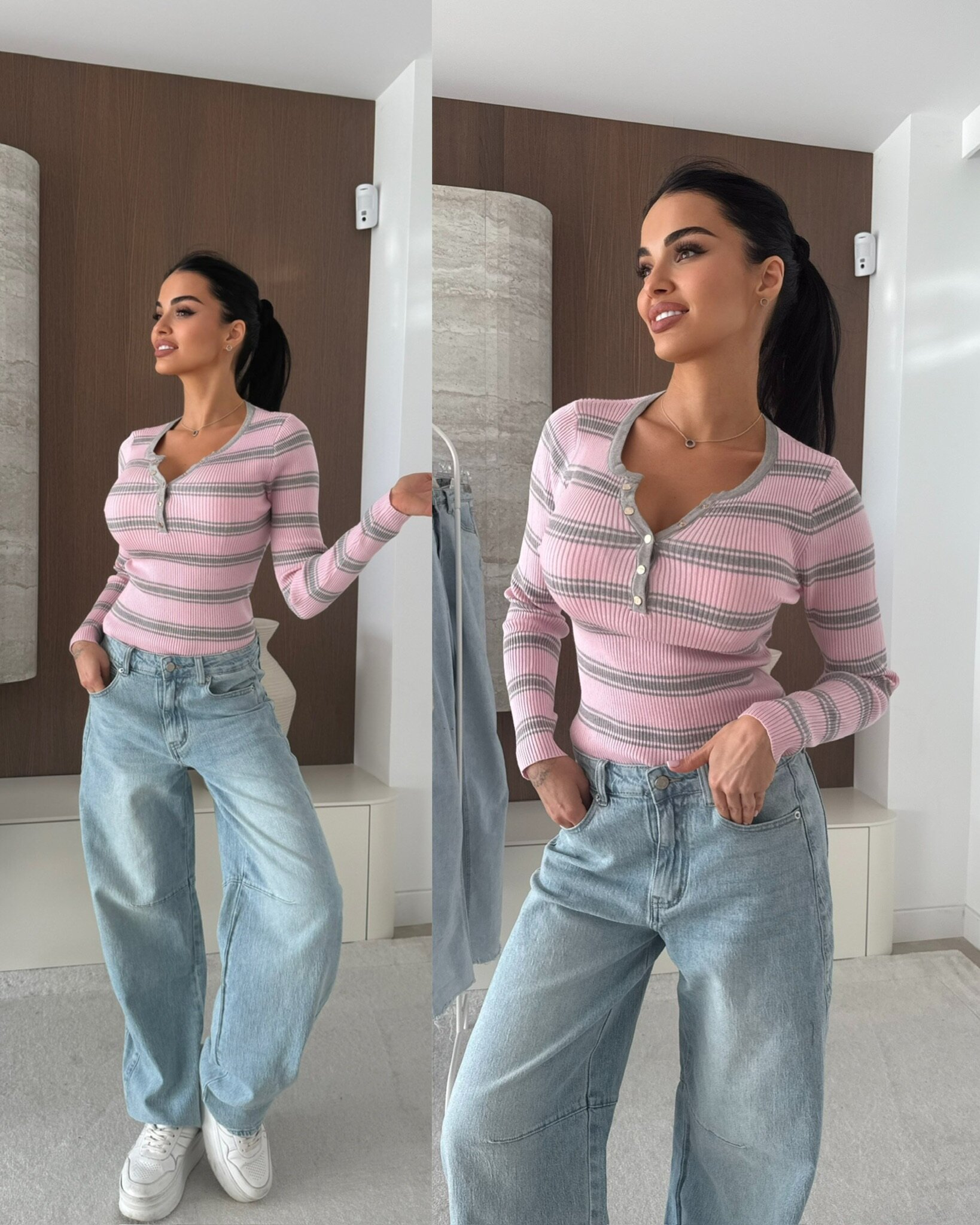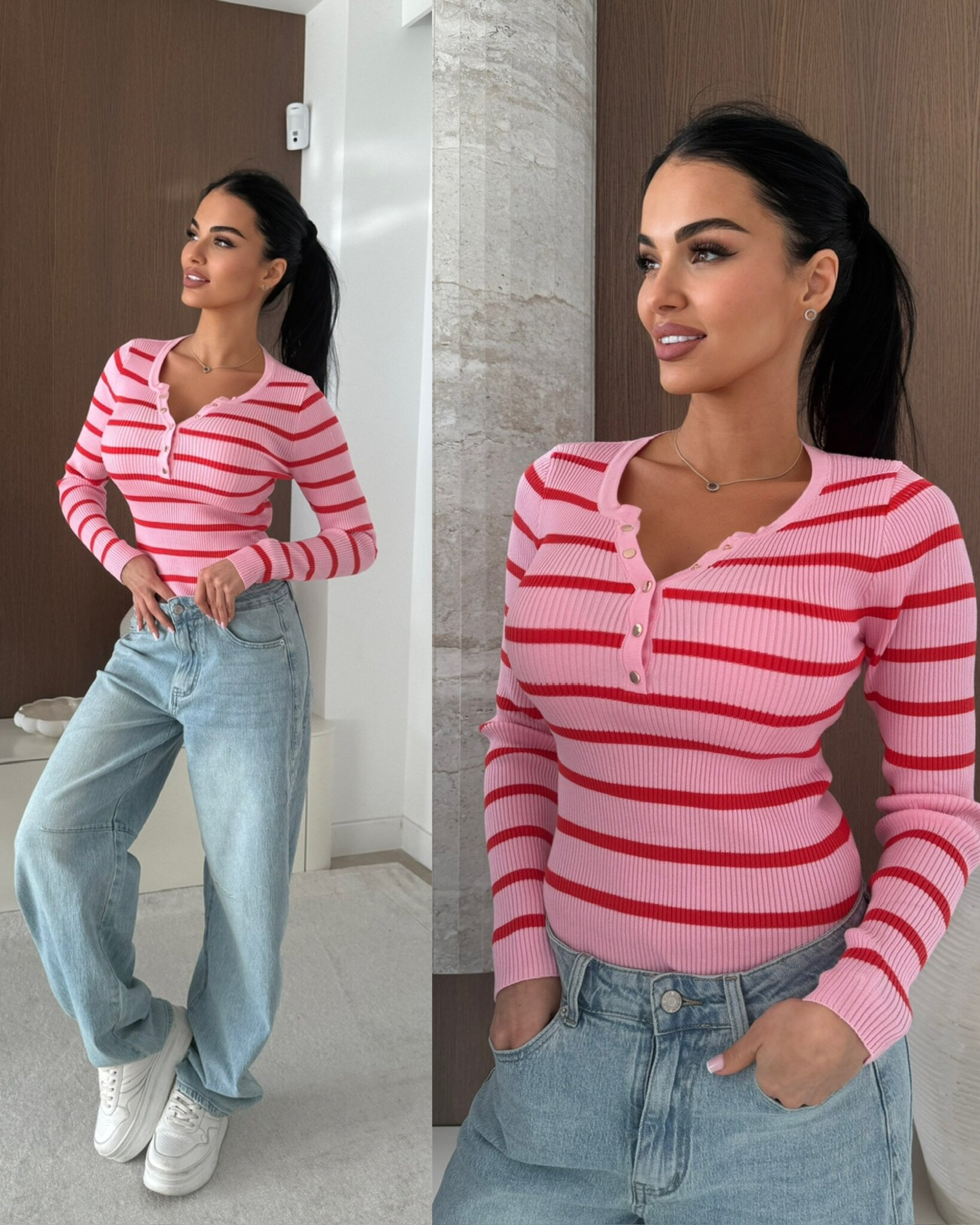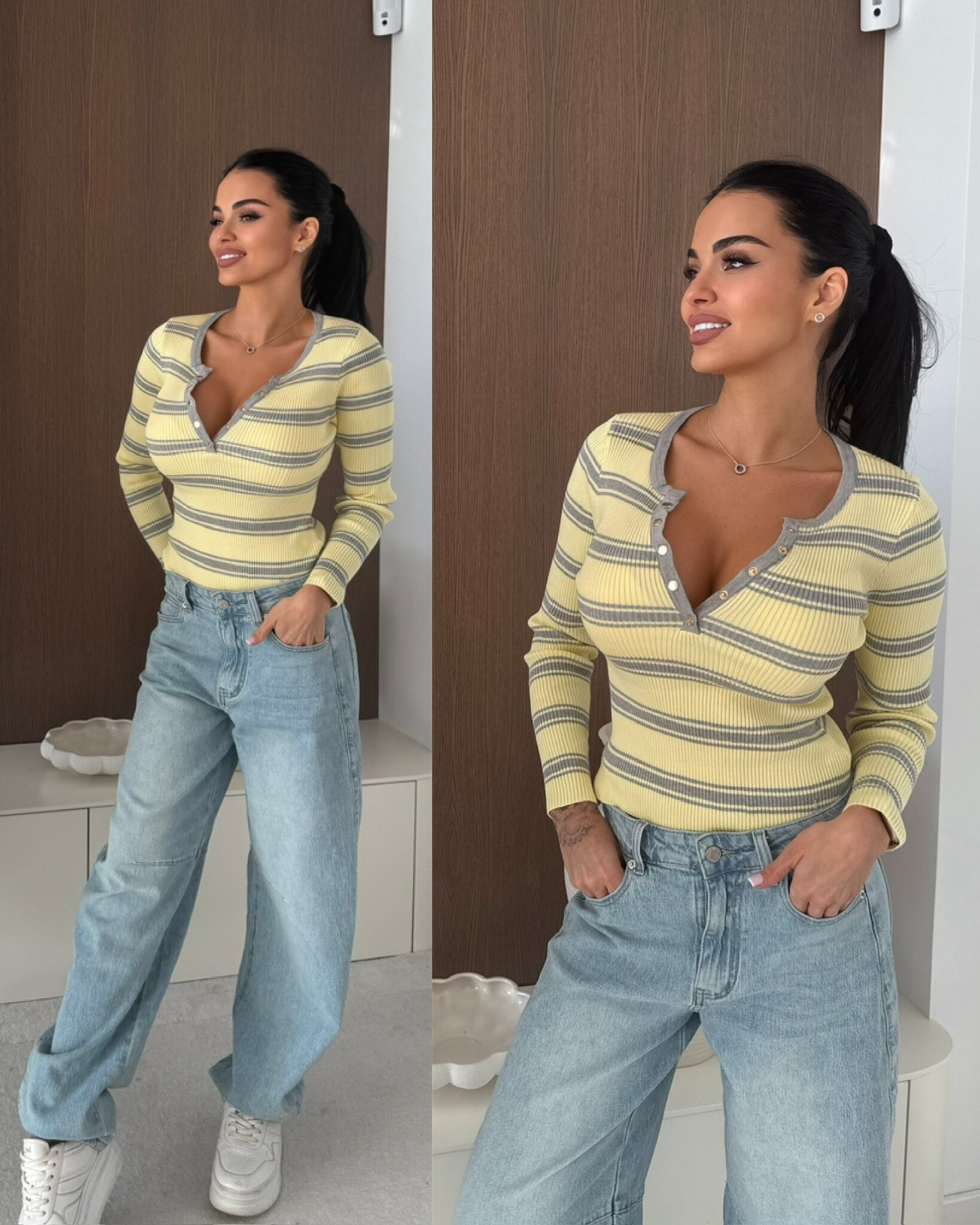 Dopasowana bluzka z prążkowanej dzianiny to idealna propozycja do kobiecych stylizacji na co dzień i do pracy. Model z długim rękawem oraz zapięciem na guziki przy dekolcie podkreśla sylwetkę i nadaje stylizacji modnego, casualowego charakteru. Świetnie sprawdzi się noszona samodzielnie lub jako baza pod marynarkę czy kardigan.
