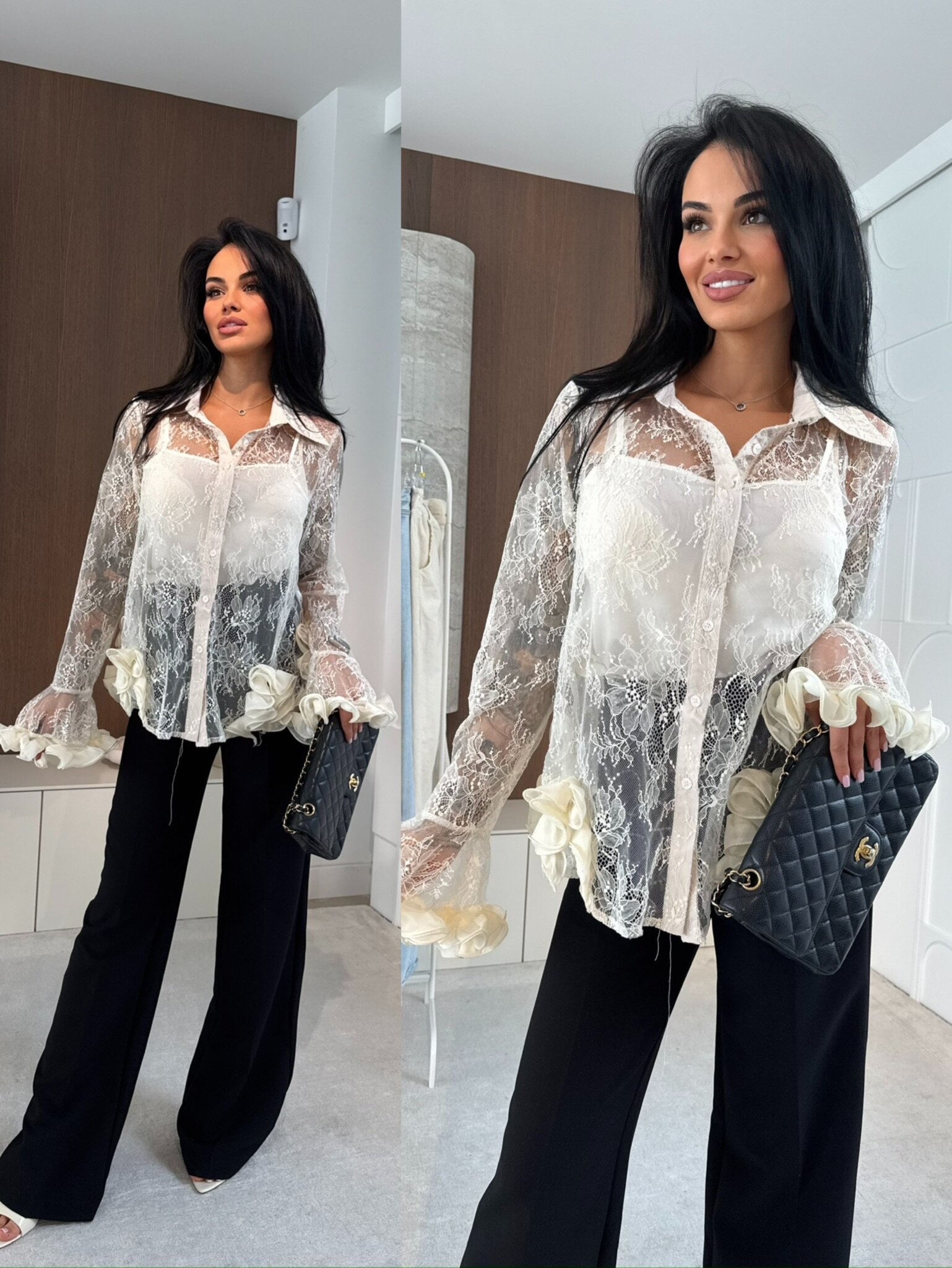 Bluzka Minelli to idealna baza stylizacji. 艢wietnie sprawdzi si臋 w zestawieniach na wyj膮tkowe okoliczno艣ci. Wyko艅czona ponadczasow膮 koronk膮.