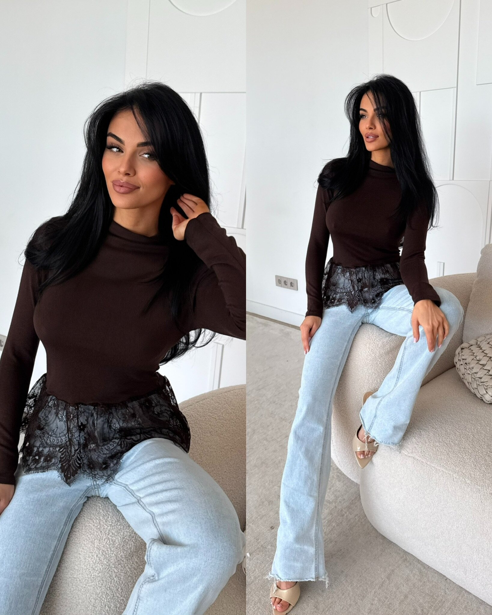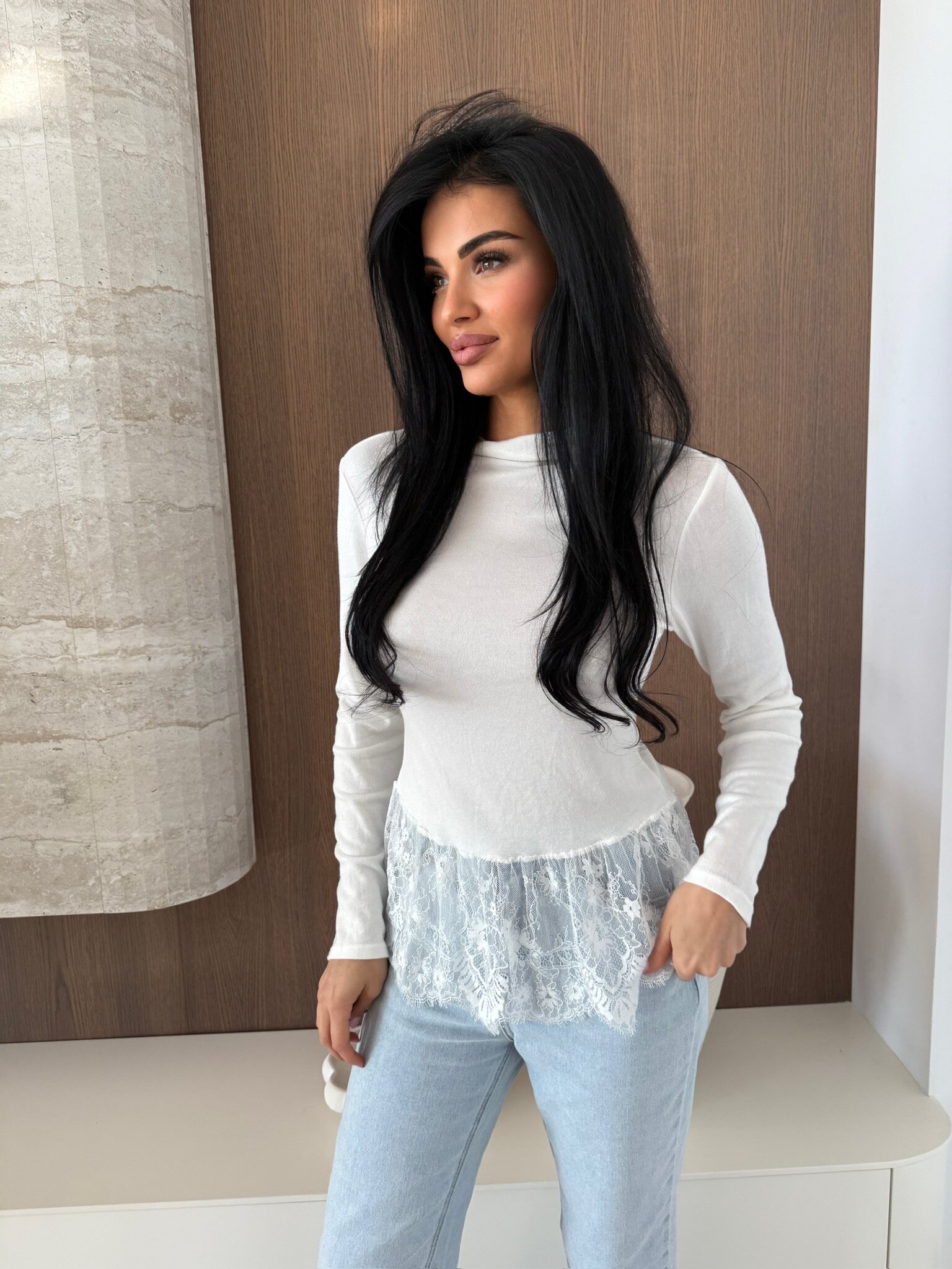 Stylowa bluzka z subtelną koronką to wyjątkowy element garderoby, który łączy elegancję z codzienną wygodą. Delikatny materiał i ozdobne wykończenie dodają jej kobiecego charakteru, dzięki czemu świetnie sprawdzi się zarówno w stylizacjach casualowych, jak i bardziej eleganckich. Idealna na co dzień, do pracy czy na wyjścia.