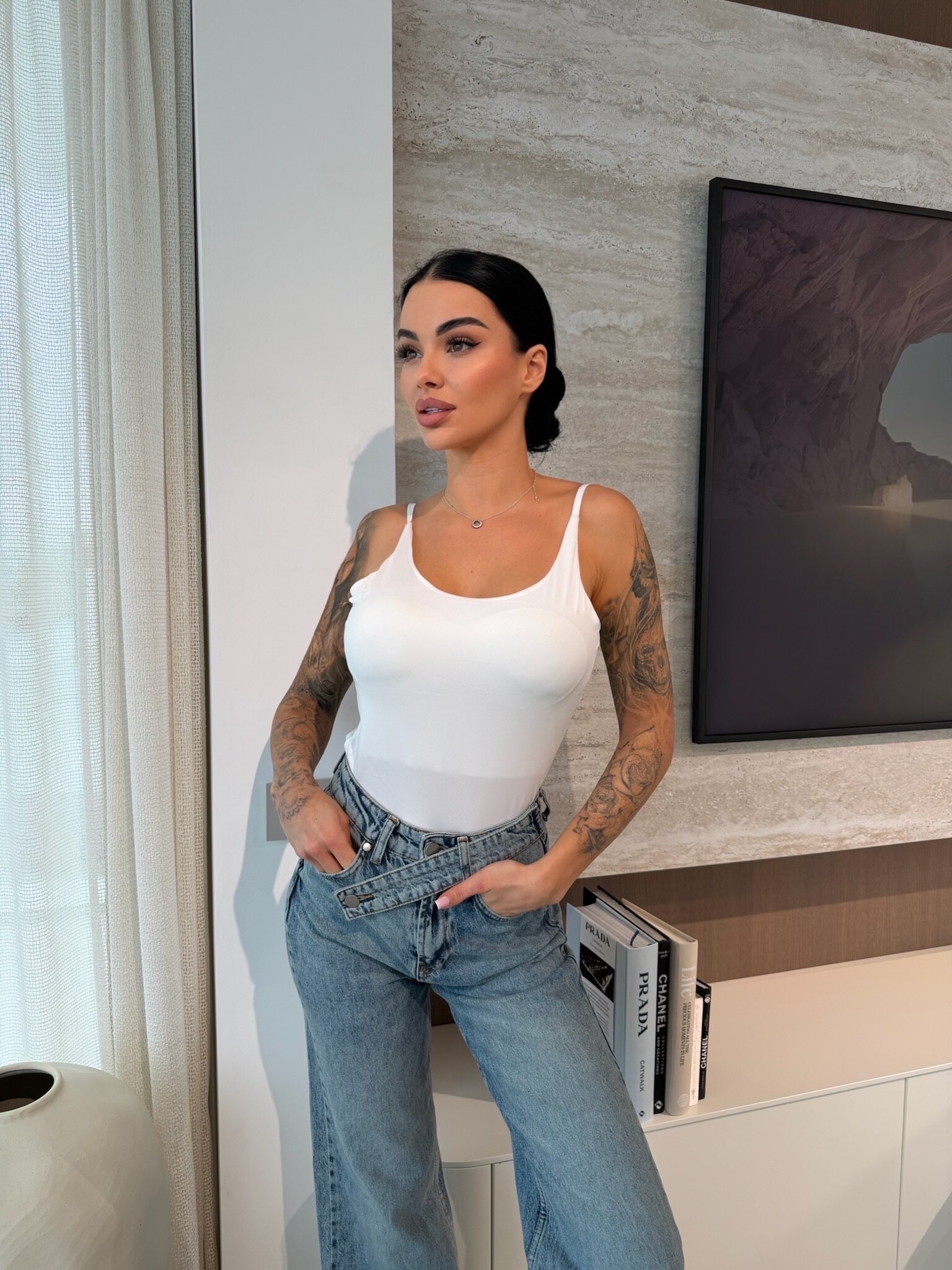 Body na ramiączkach to idealne połączenie wygody, kobiecego stylu i funkcjonalności. Doskonale dopasowuje się do sylwetki, podkreślając kształty i zapewniając komfort noszenia przez cały dzień. Dzięki elastycznemu materiałowi i wszytym miseczkom na biust świetnie sprawdzi się zarówno jako baza codziennych stylizacji, jak i element bardziej eleganckiego outfitu.