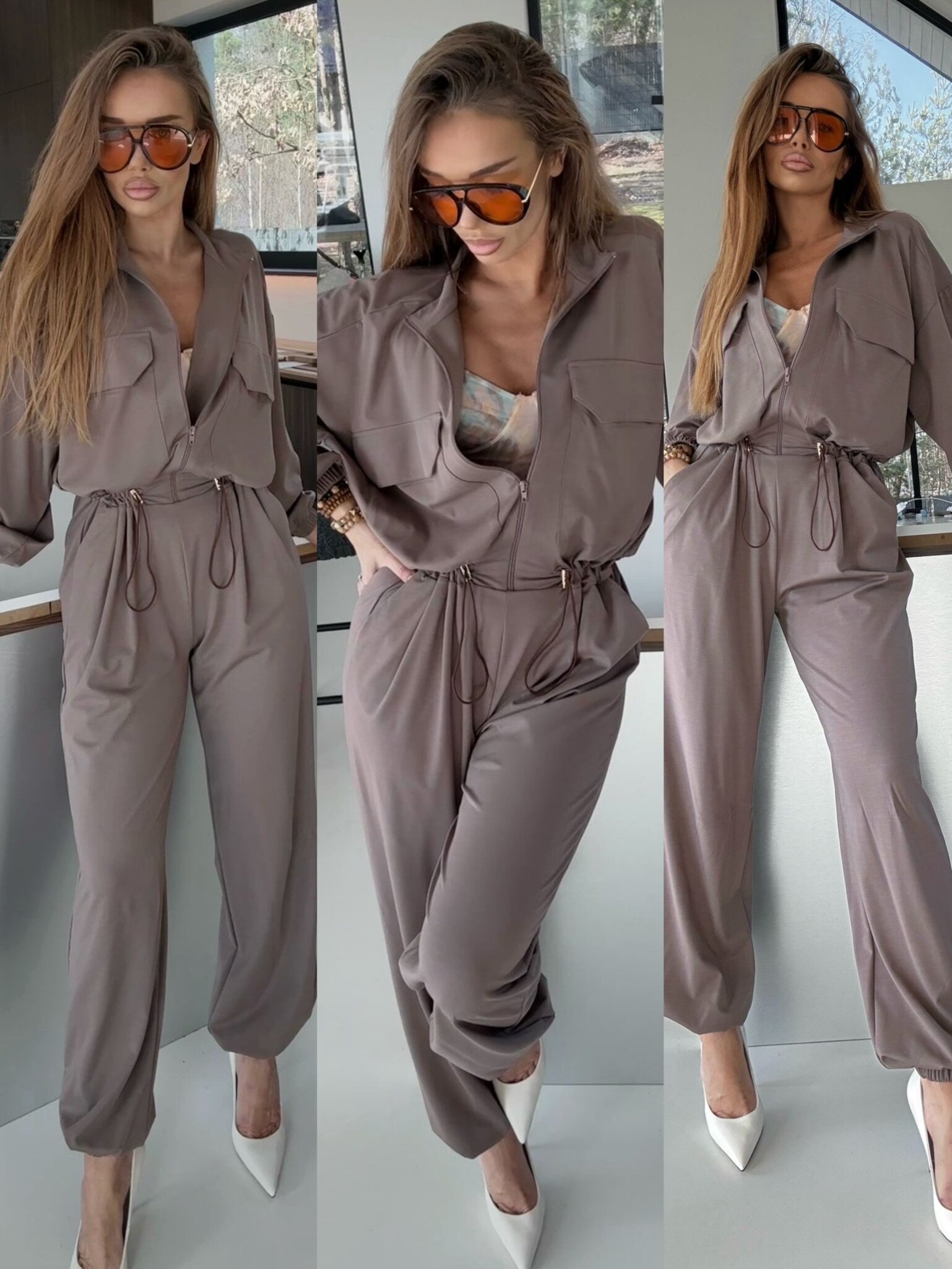Damski kombinezon z długim rękawem to stylowa i wygodna propozycja na co dzień i do eleganckich stylizacji. Luźniejszy fason z regulacją w talii podkreśla sylwetkę, zapewniając jednocześnie komfort noszenia. Model zapinany na suwak z kołnierzykiem łączy nowoczesny design z funkcjonalnością.