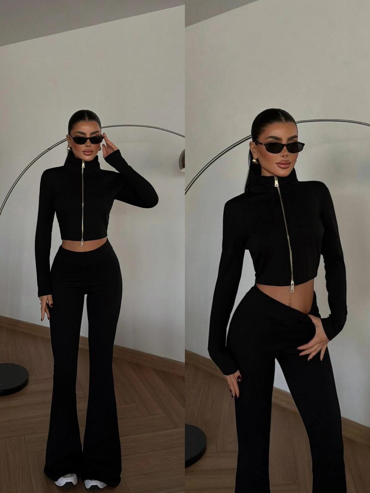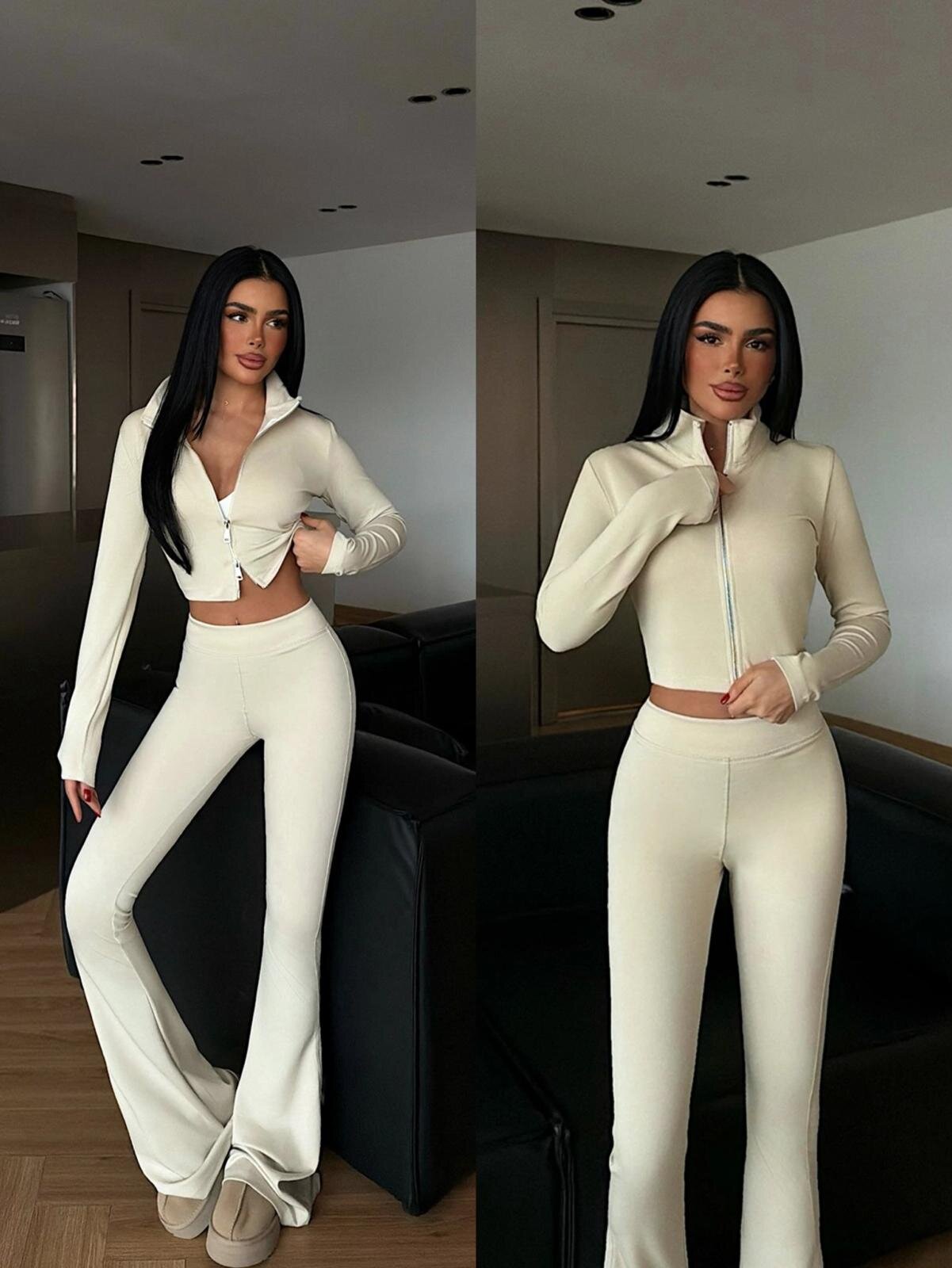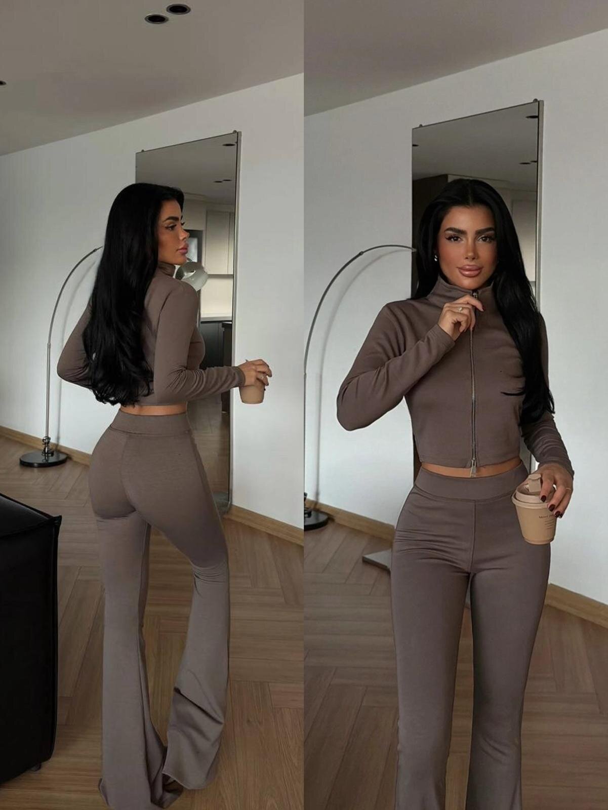 Komplet Adios to modny komplet dresowy damski, kt贸ry 艂膮czy elegancj臋 z wygod膮. Dopasowana bluza z zamkiem i spodnie z wysokim stanem oraz rozszerzan膮 nogawk膮 pi臋knie podkre艣laj膮 sylwetk臋. Idealny na co dzie艅 i do stylizacji casual.