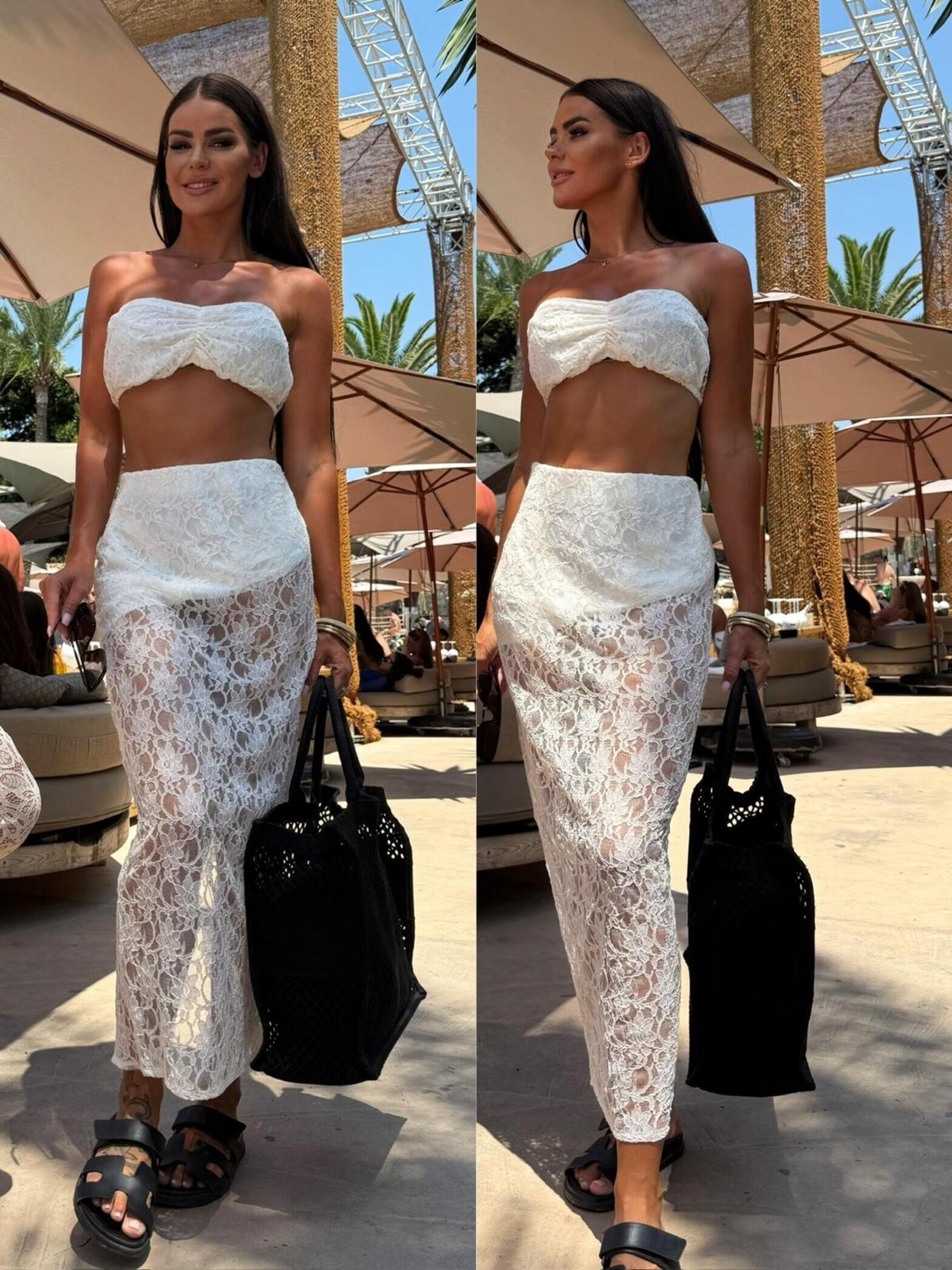 Top + sp贸dnica o koronkowym wyko艅czeniu.