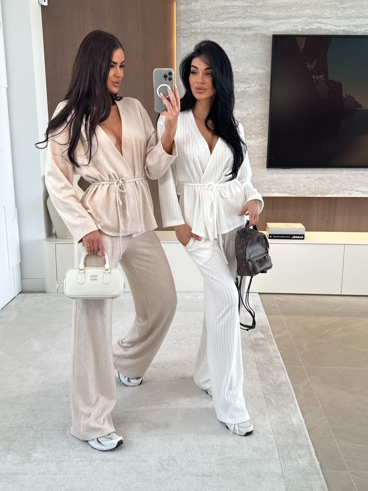 - dopasowana góra z szerokimi nogawkami