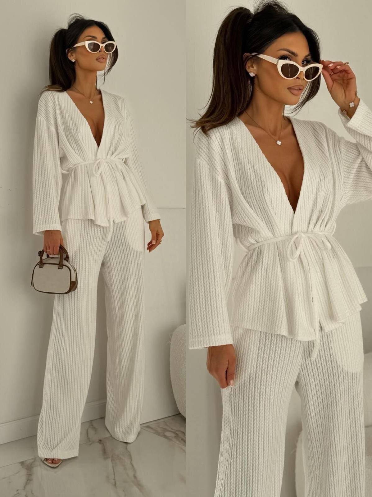 Stylowy i komfortowy kombinezon z szerokimi nogawkami i wiązaniem w talii – idealny na każdą okazję. Ten dopasowany kombinezon łączy elegancję z codziennym komfortem.