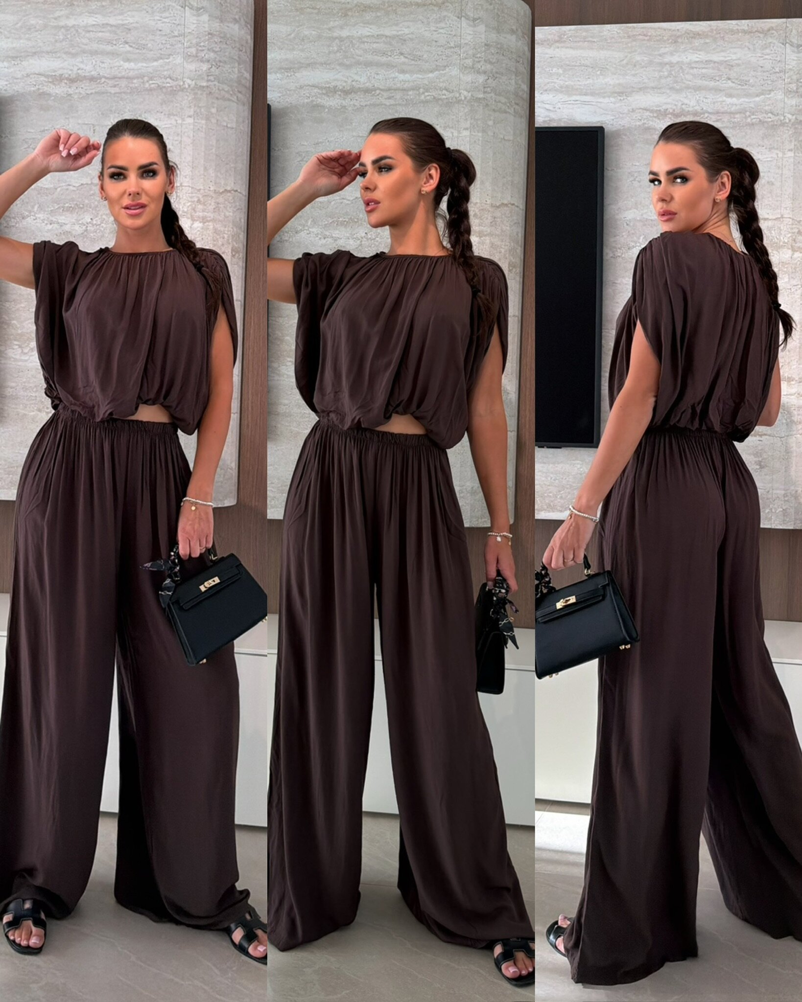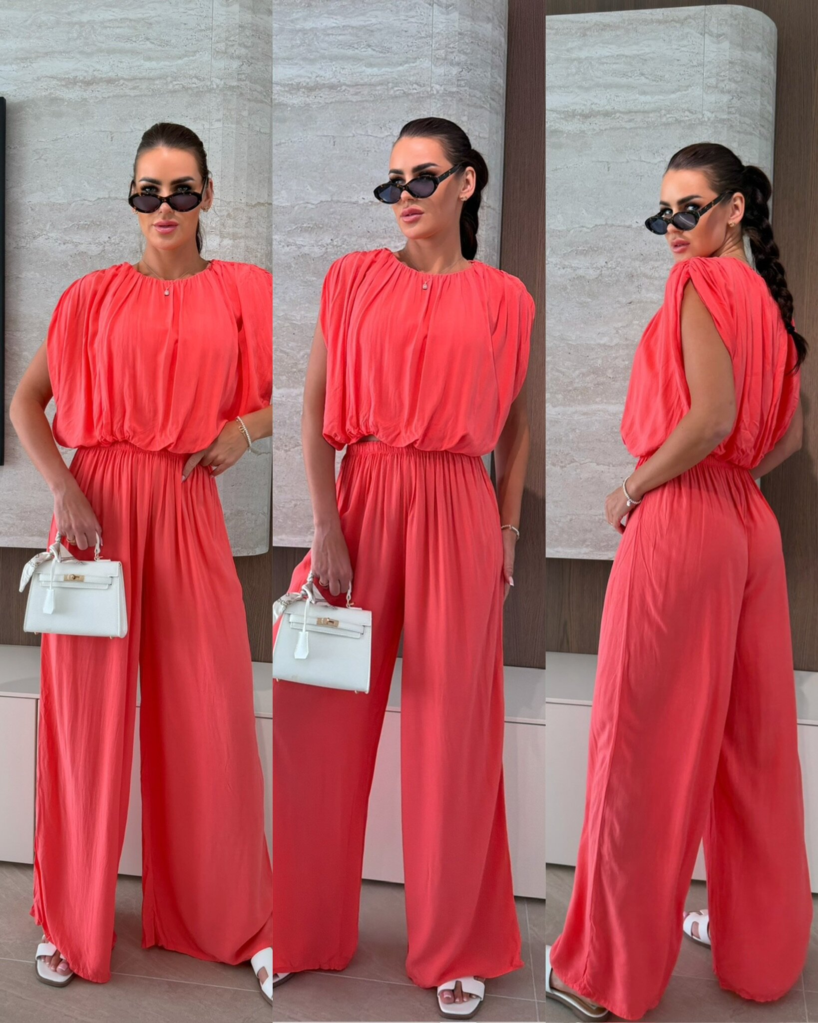 Postaw na elegancj臋 i swobod臋 z wyj膮tkowym kompletem 2w1 Marlee. Ten zestaw sk艂ada si臋 z efektownej, marszczonej bluzki oraz spodni o szerokich nogawkach typu wide-leg. Wykonany z lekkiego, lej膮cego materia艂u, stanowi gotow膮 i stylow膮 propozycj臋, kt贸ra idealnie odnajdzie si臋 zar贸wno w codziennych, jak i wieczorowych zestawieniach.