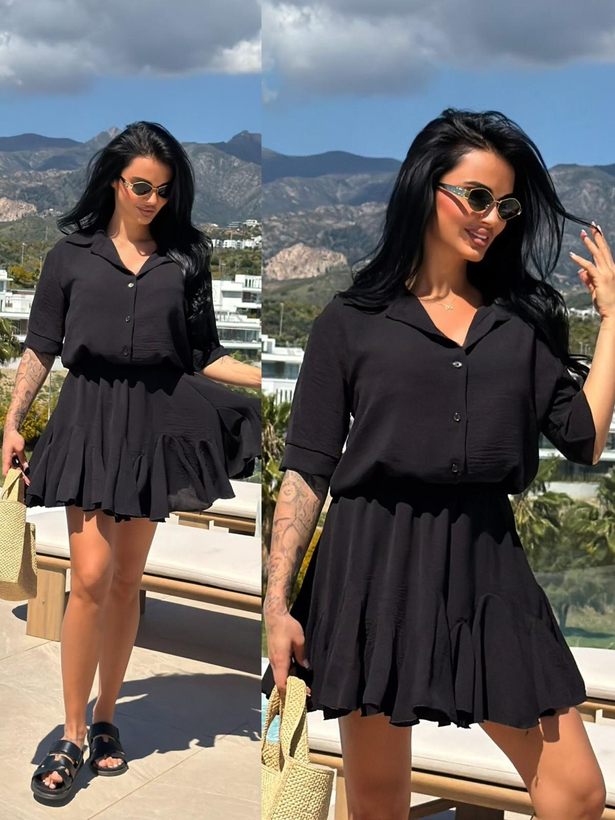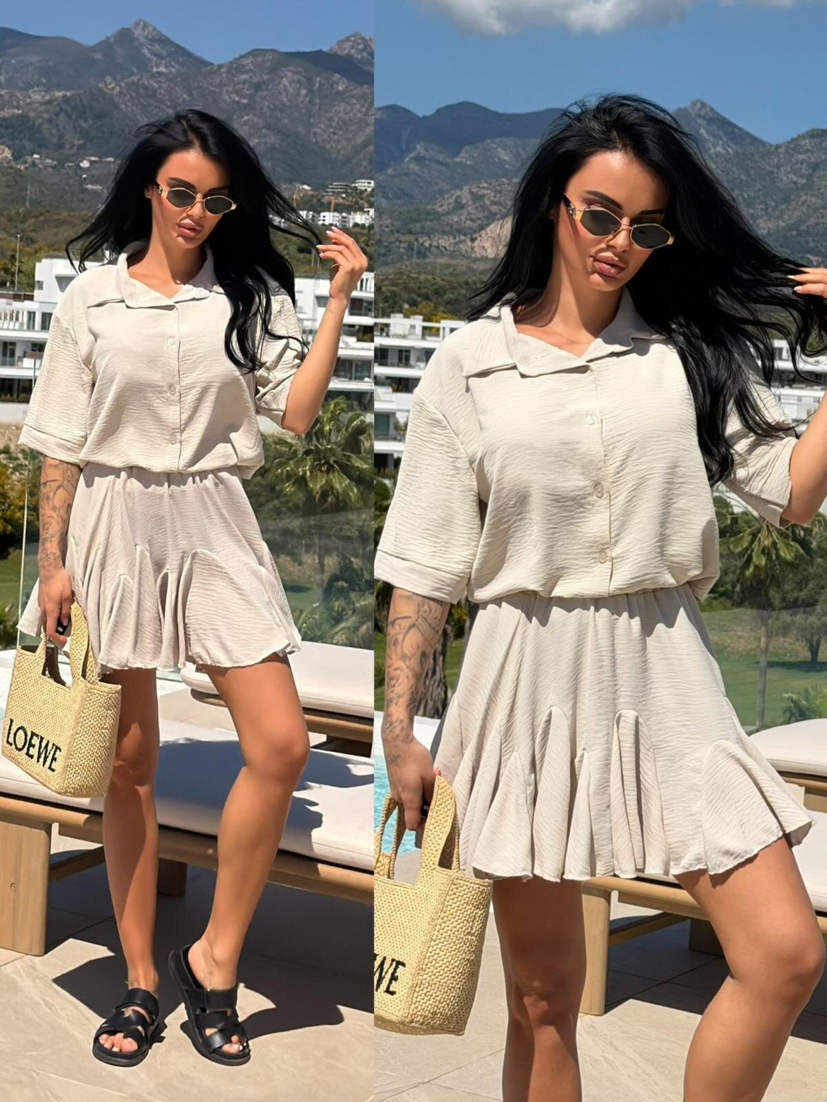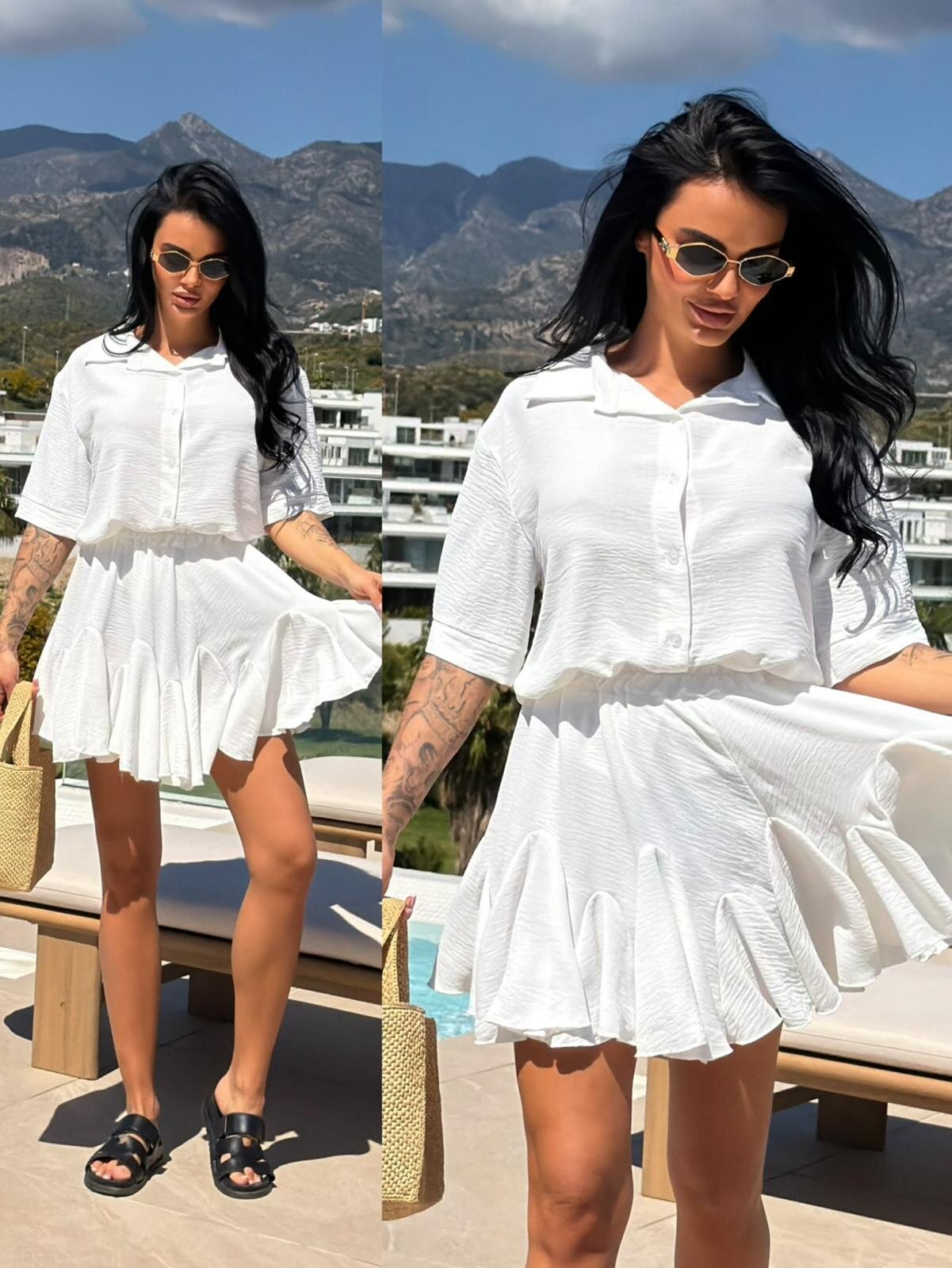 Zestaw Ravello to elegancka, a jednocześnie swobodna stylizacja, składająca się z luźnej koszuli oraz efektownyej spódniczki. Wykonany z lekkiego materiału o unikalnej, gofrowanej strukturze, zapewnia komfort i modny wygląd w letnie dni. Idealny jako gotowy total look lub baza do wielu różnorodnych stylizacji.