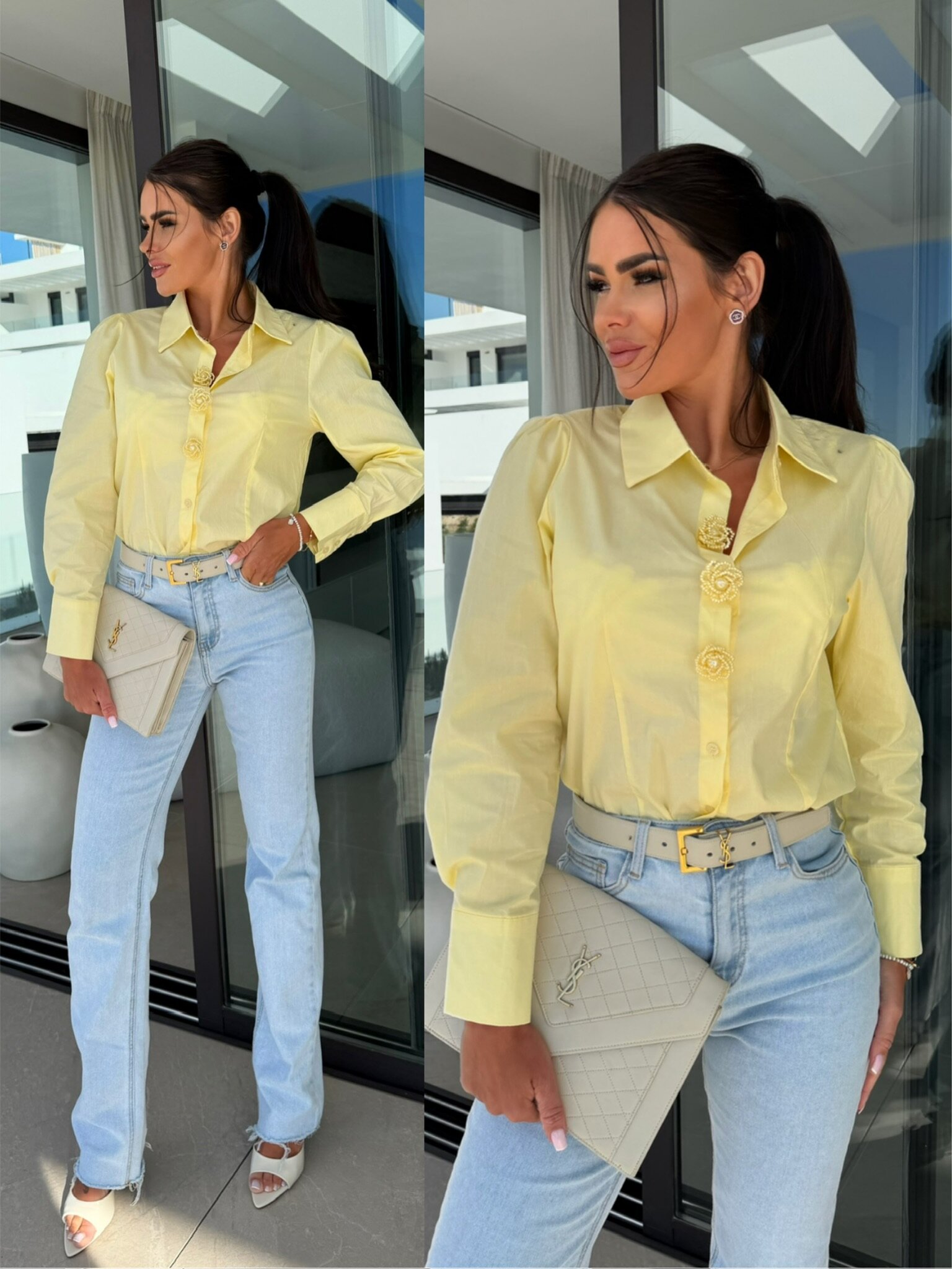 Klasyczna koszula Meliora w delikatnym, pastelowym odcieniu idealnym na wiosnę. Wykonana z lekkiego, przyjemnego w dotyku materiału, zapewnia komfort noszenia przez cały dzień. Ozdobne guziki dodają jej subtelnej elegancji i wyjątkowego charakteru, dzięki czemu świetnie sprawdzi się zarówno w stylizacjach codziennych, jak i bardziej eleganckich.