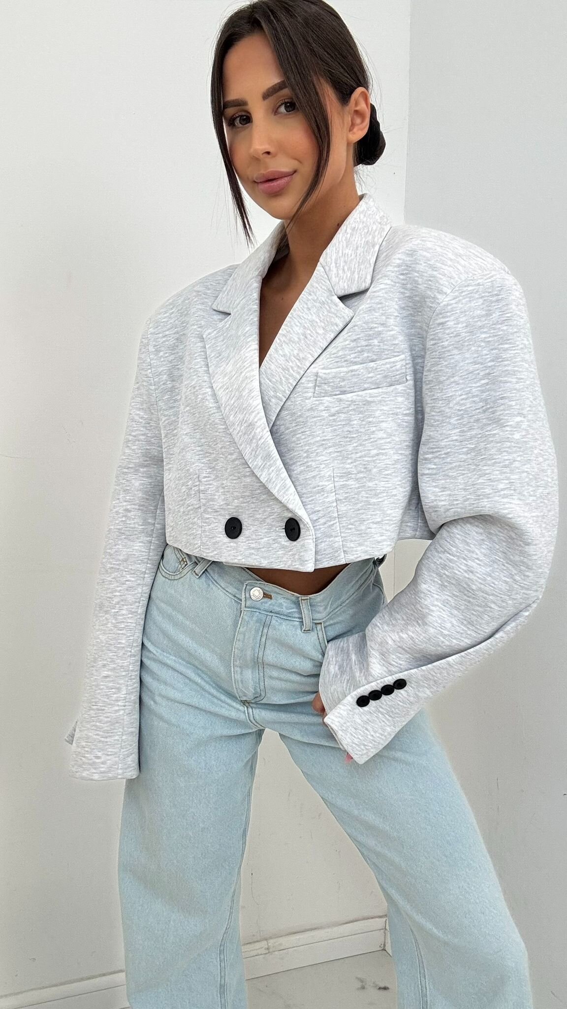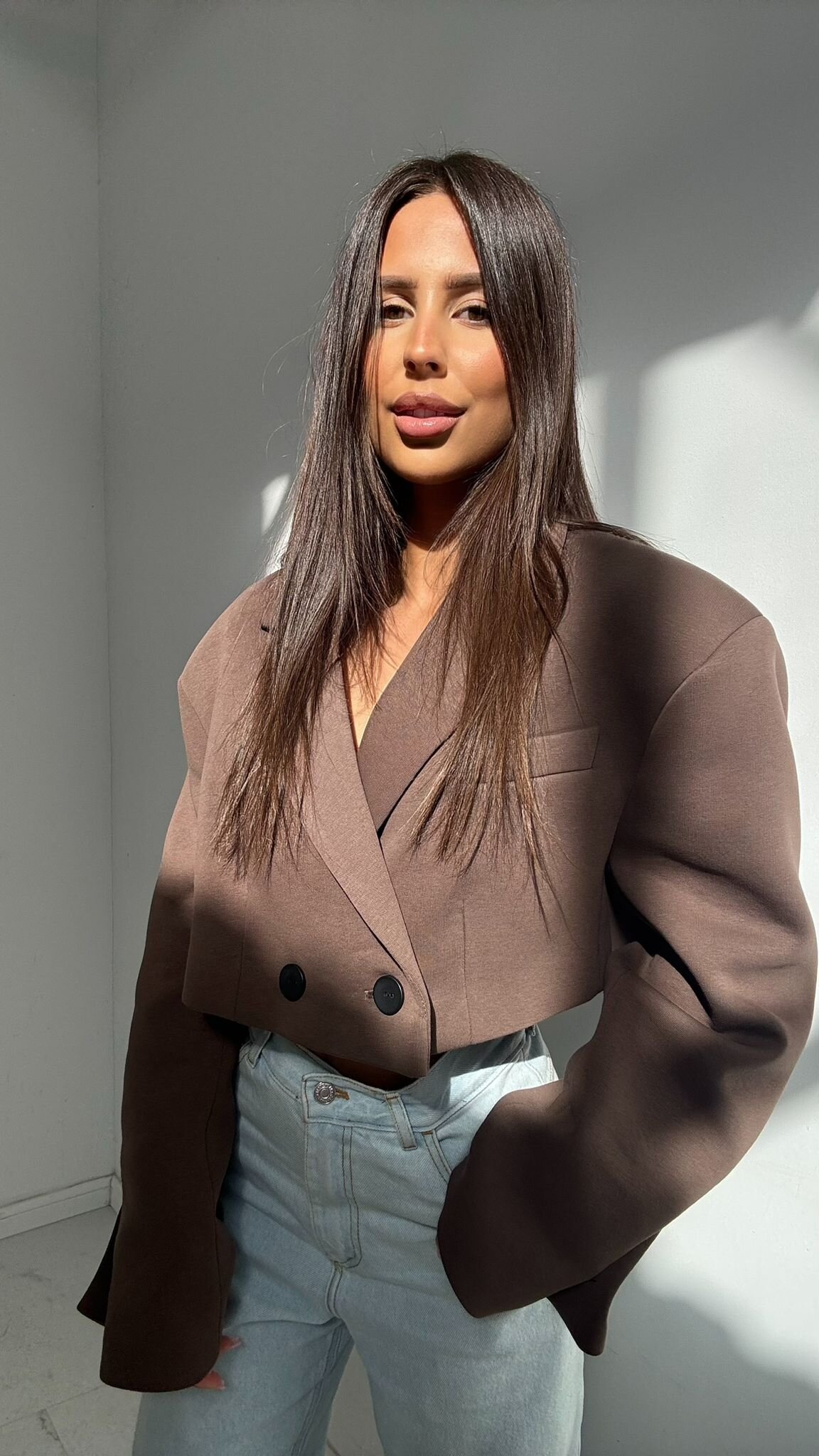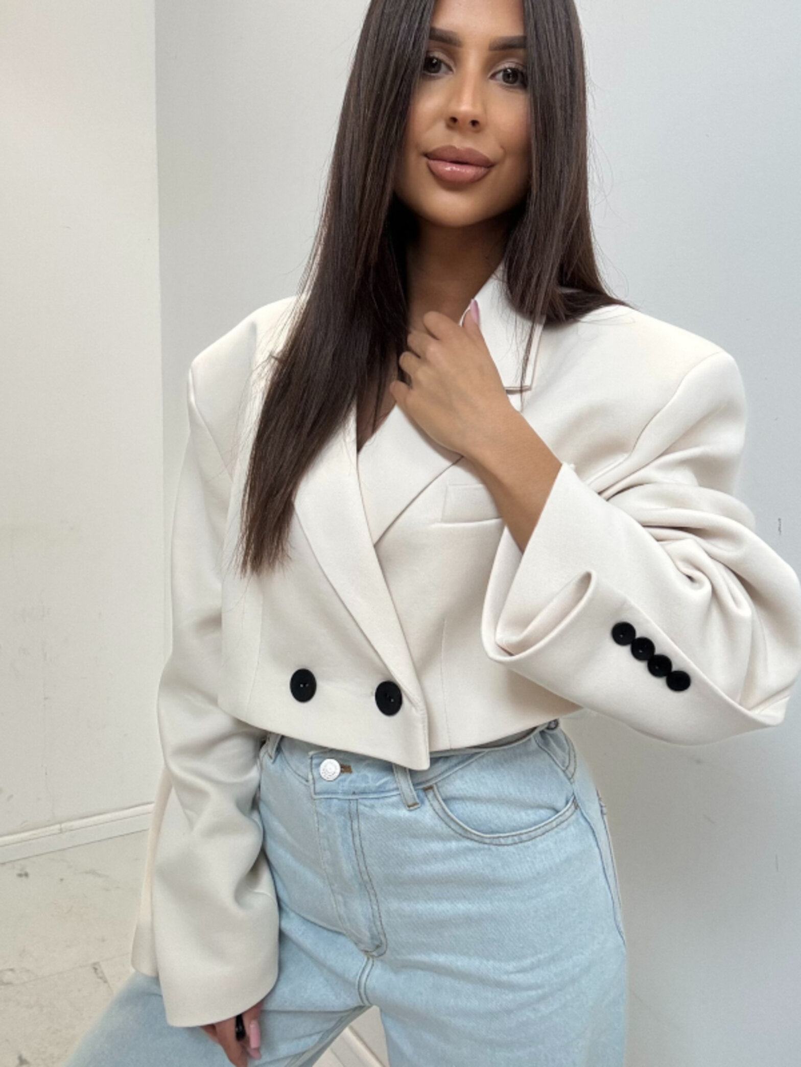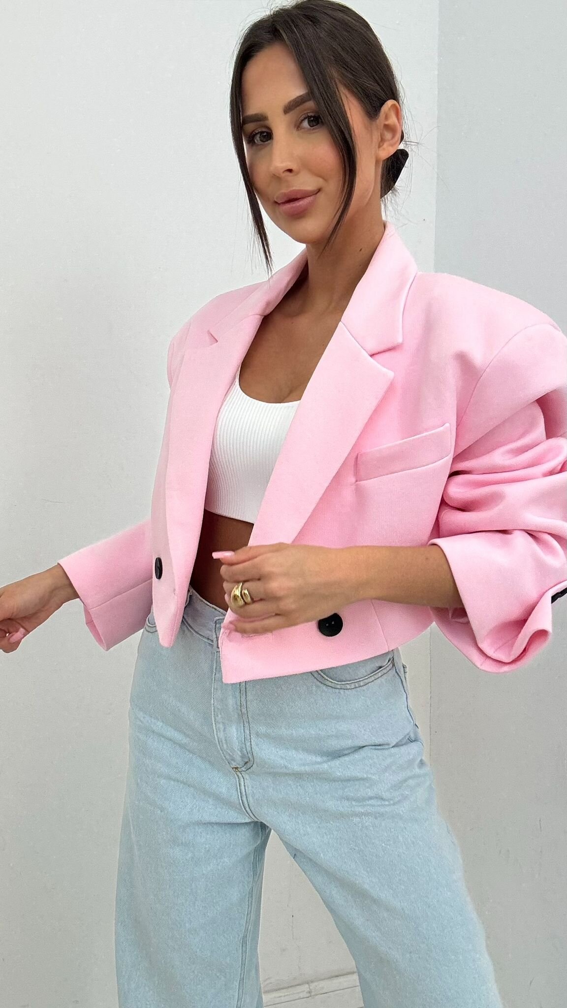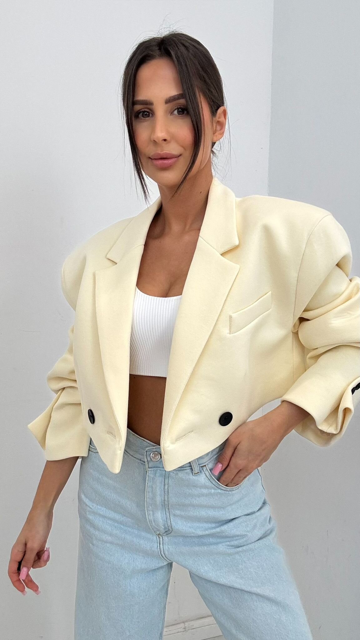 Marynarka Arma to propozycja o modnym kroju, kt贸ra dodaje stylizacji wyrazistego charakteru. Model posiada podszewk臋 oraz poduszeczki usztywniaj膮ce ramiona, dzi臋ki czemu lepiej uk艂ada si臋 na sylwetce i podkre艣la lini臋 ramion. Czarne guziki nadaj膮 detalowi charakteru, a klasyczna forma w po艂膮czeniu z nowoczesnym designem sprawia, 偶e marynarka 艣wietnie sprawdzi si臋 zar贸wno w codziennych, jak i eleganckich stylizacjach.