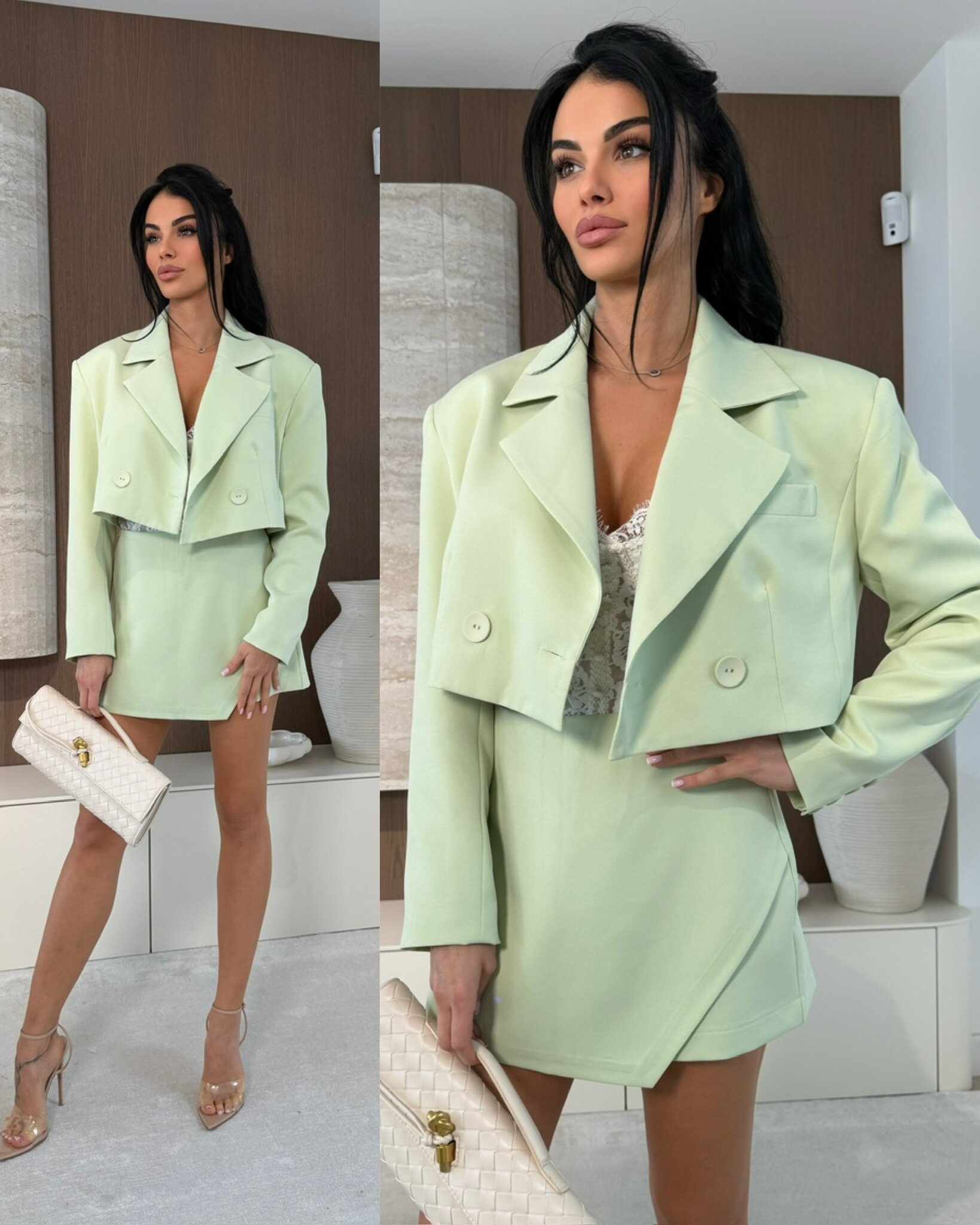 Stylowa, kr贸tka marynarka o eleganckim, nowoczesnym kroju, idealna do tworzenia modnych zestaw贸w zar贸wno na co dzie艅, jak i na bardziej formalne okazje. Podkre艣la sylwetk臋, dodaje charakteru stylizacji i 艣wietnie komponuje si臋 z koszulami, sp贸dnicami oraz spodniami z wysokim stanem.