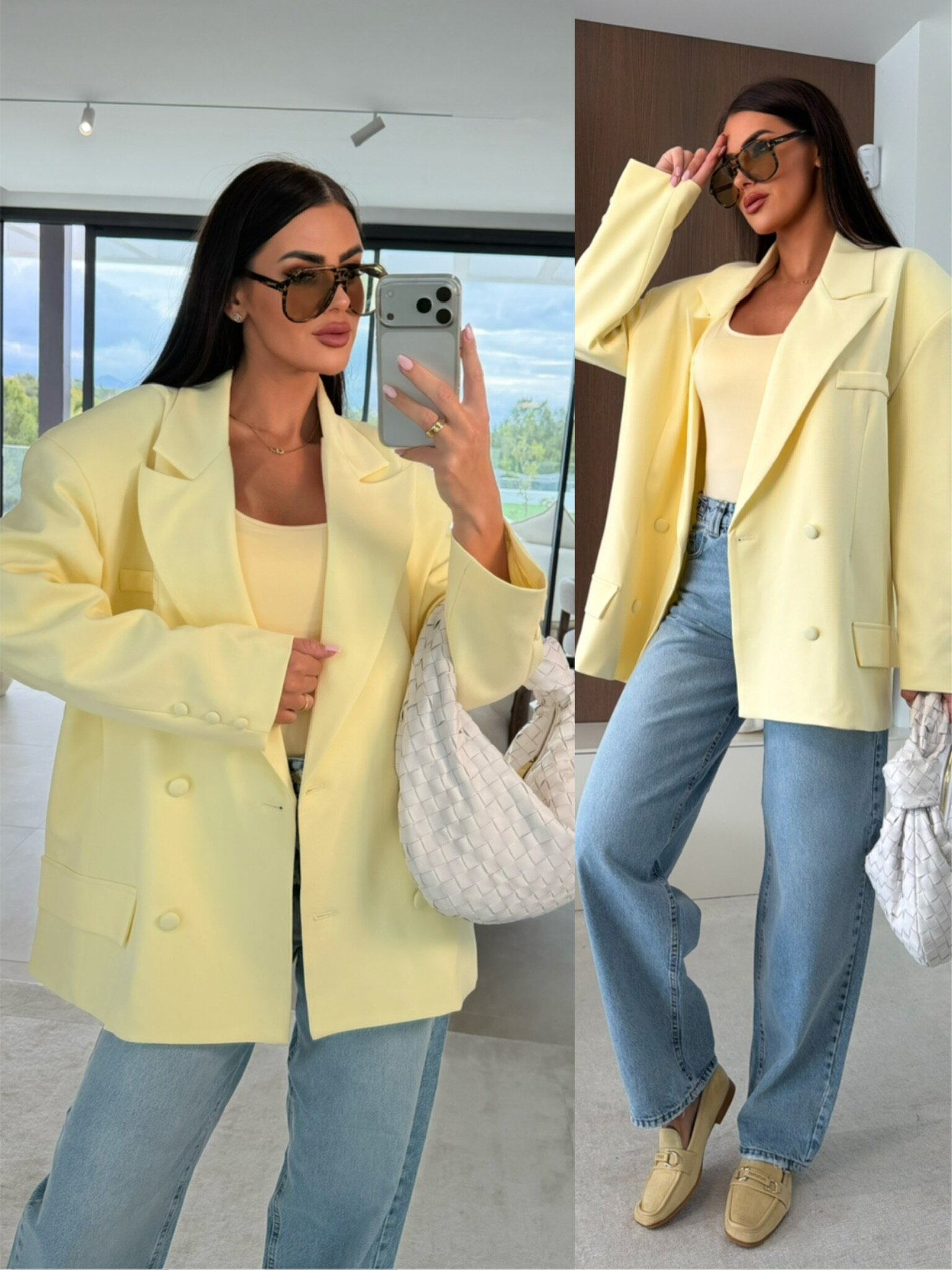 Modna marynarka damska oversize to must-have w nowoczesnej garderobie, idealny do stylizacji casualowych i eleganckich. Lu藕ny kr贸j z obni偶on膮 lini膮 ramion nadaje jej swobodnego, fashionowego charakteru, a poduszki na ramionach subtelnie podkre艣laj膮 sylwetk臋 i nadaj膮 struktur臋. Guziki w kolorze marynarki tworz膮 sp贸jn膮, minimalistyczn膮 ca艂o艣膰. To stylowa marynarka damska, kt贸ra doskonale sprawdzi si臋 zar贸wno do spodni, jak i sukienek.