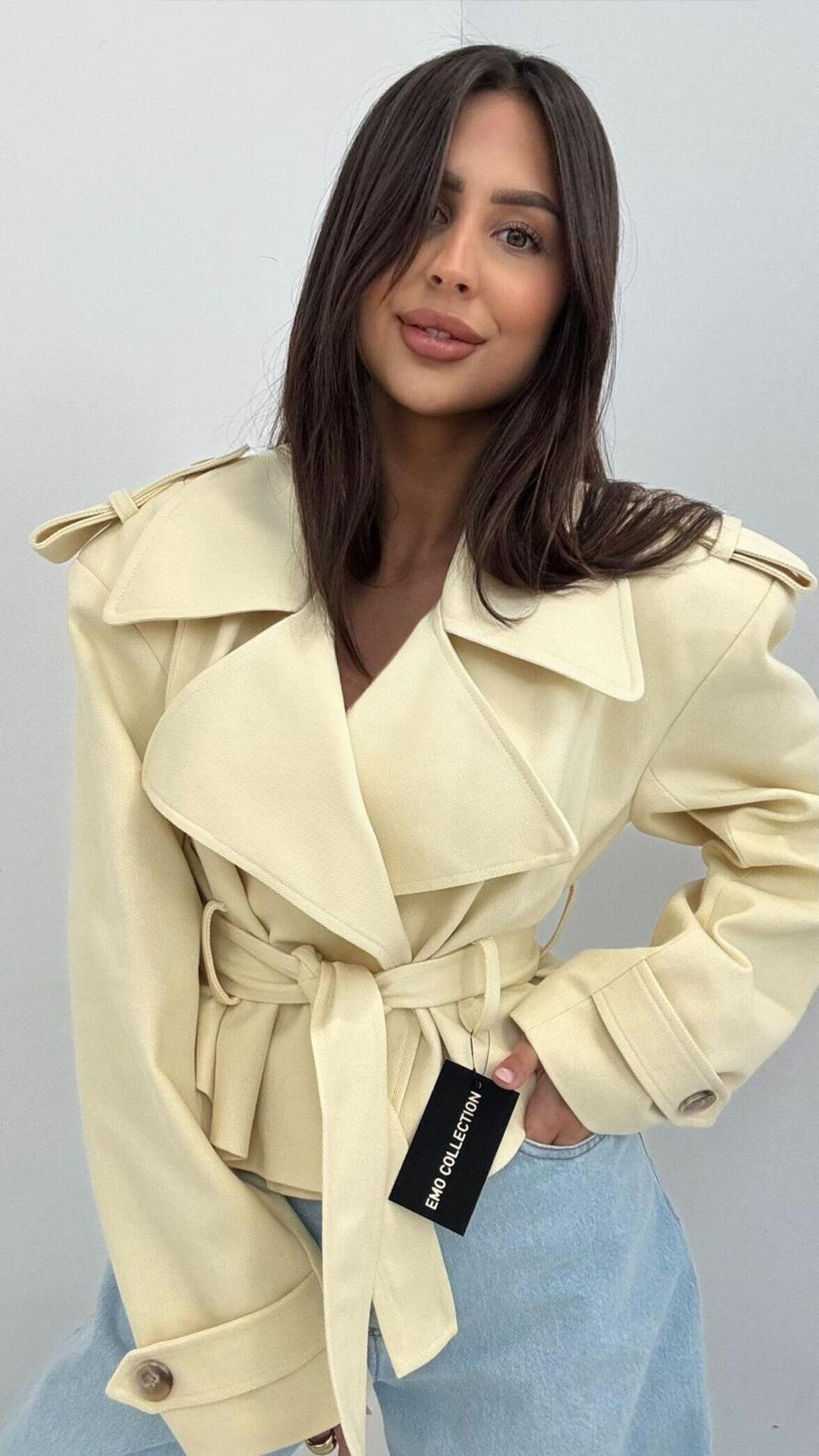 Kurtka Primavera to stylowa i ponadczasowa propozycja, kt贸ra doskonale uzupe艂ni zar贸wno codzienne, jak i bardziej eleganckie stylizacje. Wykonana z bawe艂ny, zapewnia komfort noszenia. Pasek umo偶liwia przewi膮zanie w talii, pi臋knie podkre艣laj膮c sylwetk臋 i nadaj膮c ca艂o艣ci kobiecego charakteru. To idealny wyb贸r na sezon przej艣ciowy.