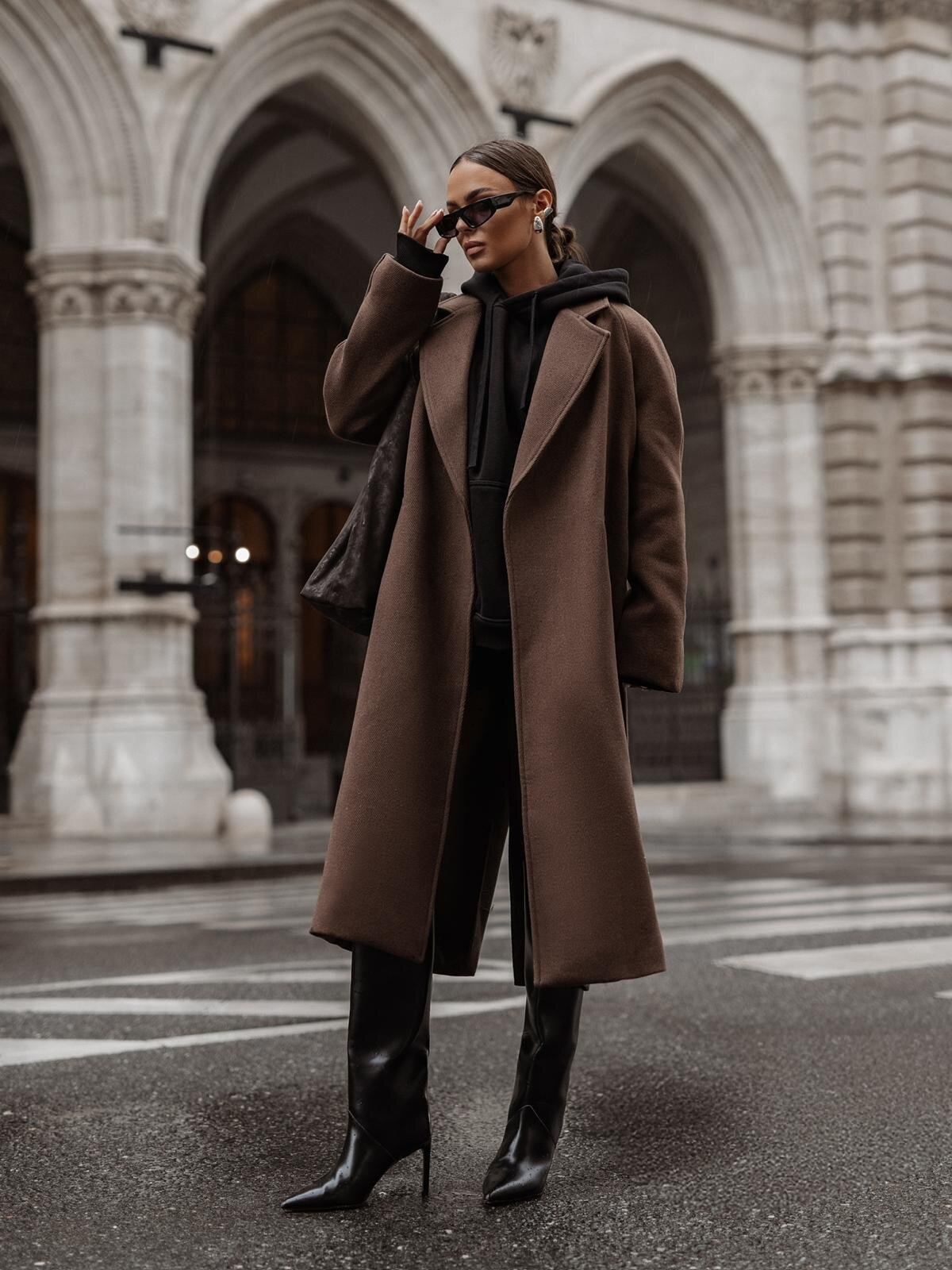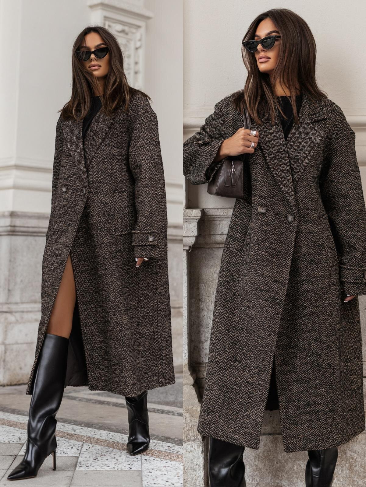 Płaszcz Osher II w jodełkę karmelowo-czarny to ponadczasowy wybór dla kobiet ceniących klasykę w nowoczesnym wydaniu. Wykonany z wysokiej jakości materiałów, łączy elegancki fason z komfortem noszenia, idealnie komponując się zarówno z codziennymi, jak i bardziej formalnymi stylizacjami.