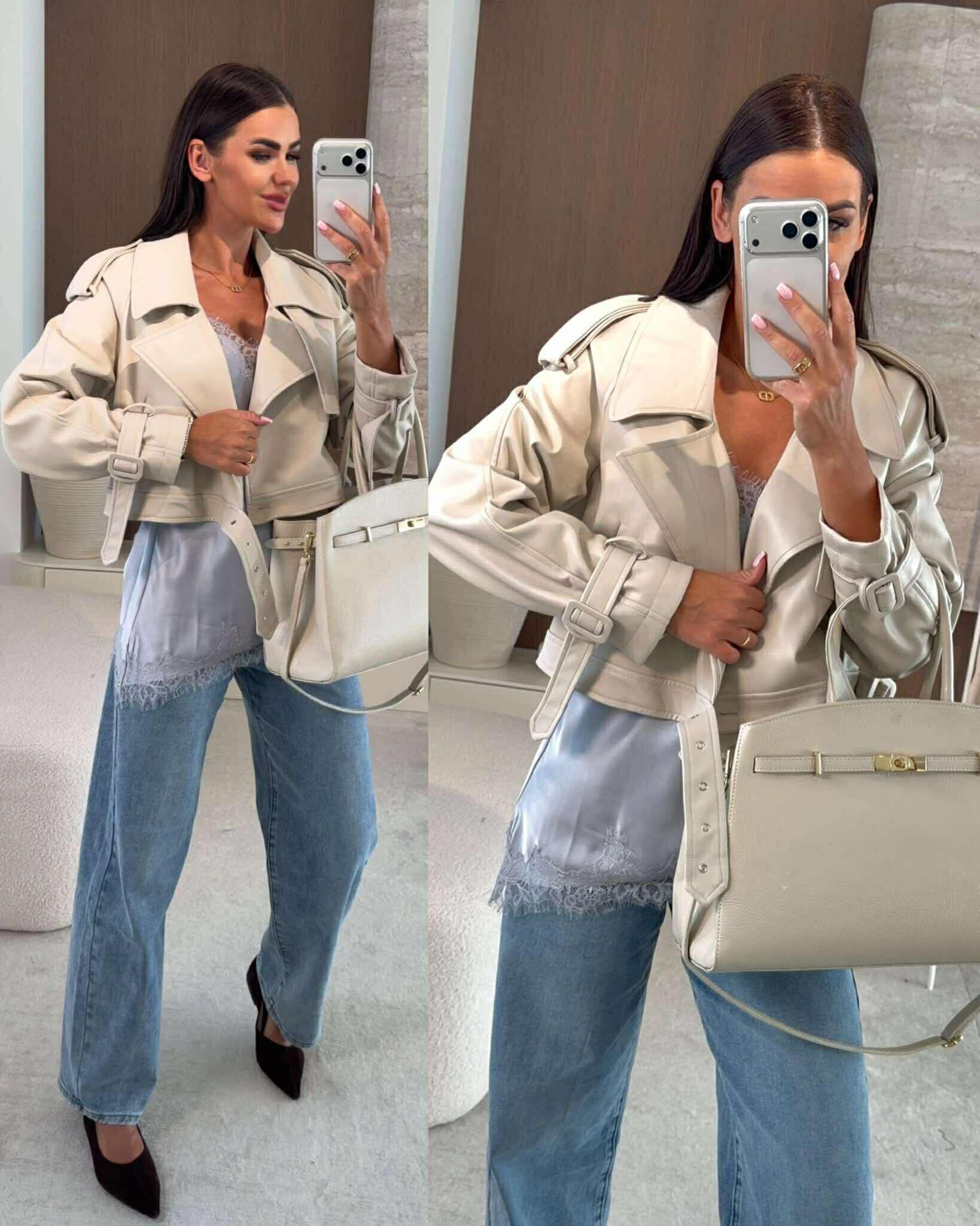 Modna ramoneska damska o kr贸tszym kroju to ponadczasowy element garderoby, kt贸ry doskonale uzupe艂ni stylizacje casualowe i miejskie. Kopertowy dekolt nadaje ca艂o艣ci charakteru, a wyraziste detale podkre艣laj膮 nowoczesny styl. Idealna propozycja na przej艣ciowe pory roku oraz jako stylowy akcent do codziennych zestaw贸w.