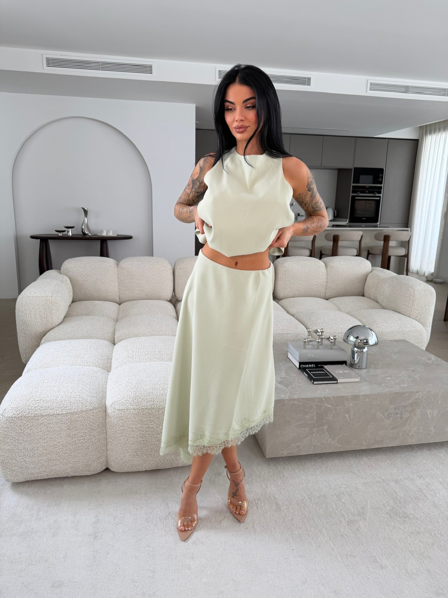 - wyko艅czenie koronk膮 u do艂u sp贸dnicy