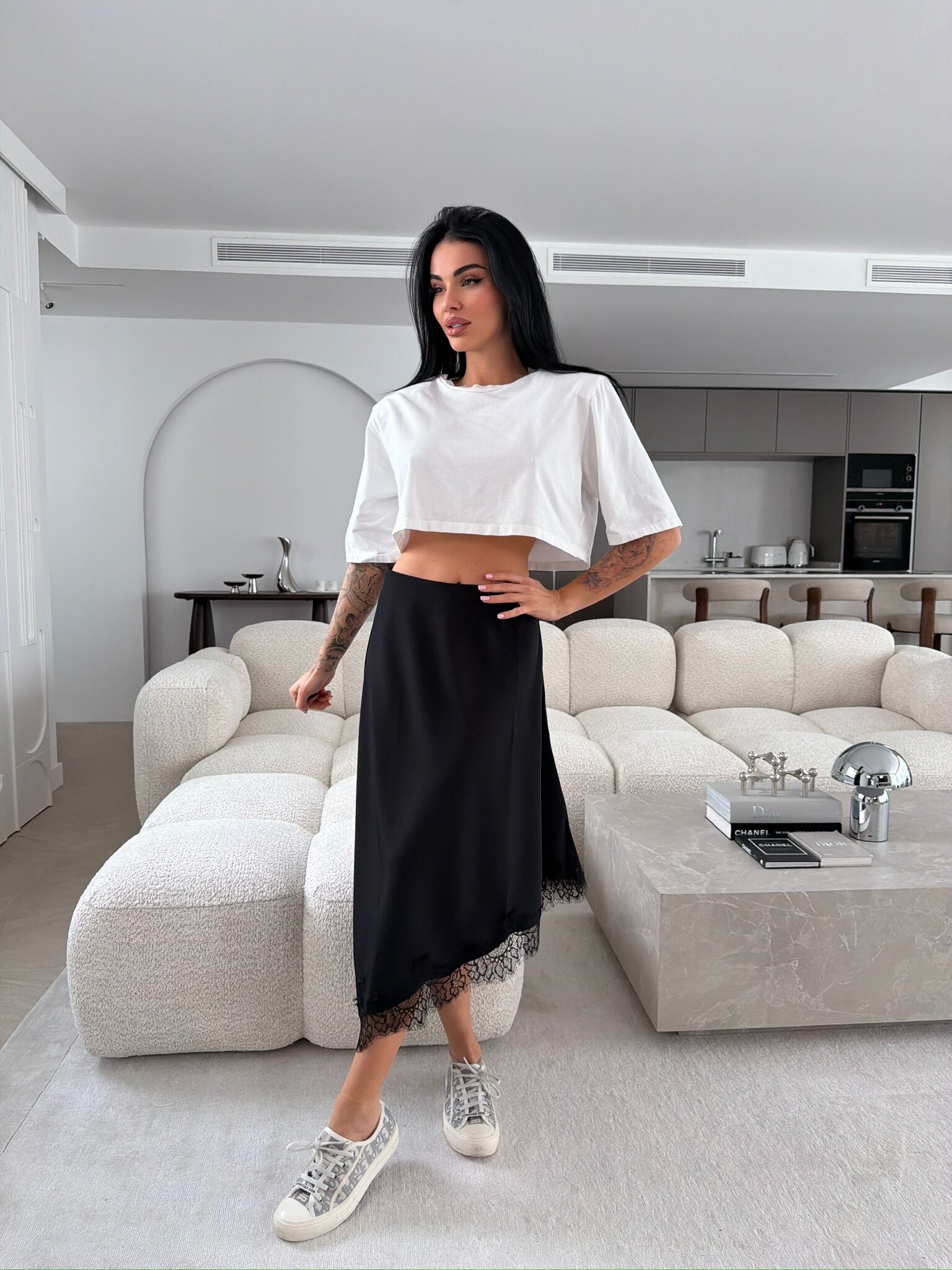Elegancka sp贸dnica midi o satynowym wyko艅czeniu to wyj膮tkowa propozycja dla kobiet ceni膮cych styl i kobiec膮 elegancj臋. Delikatnie po艂yskuj膮cy materia艂 pi臋knie uk艂ada si臋 w ruchu, a zaznaczona talia podkre艣la sylwetk臋. Asymetryczny fason dodaje nowoczesnego charakteru, natomiast subtelne wyko艅czenie koronk膮 u do艂u sp贸dnicy nadaje ca艂o艣ci lekko艣ci i zmys艂owo艣ci. To modna sp贸dnica damska, idealna zar贸wno na co dzie艅, jak i na specjalne okazje.