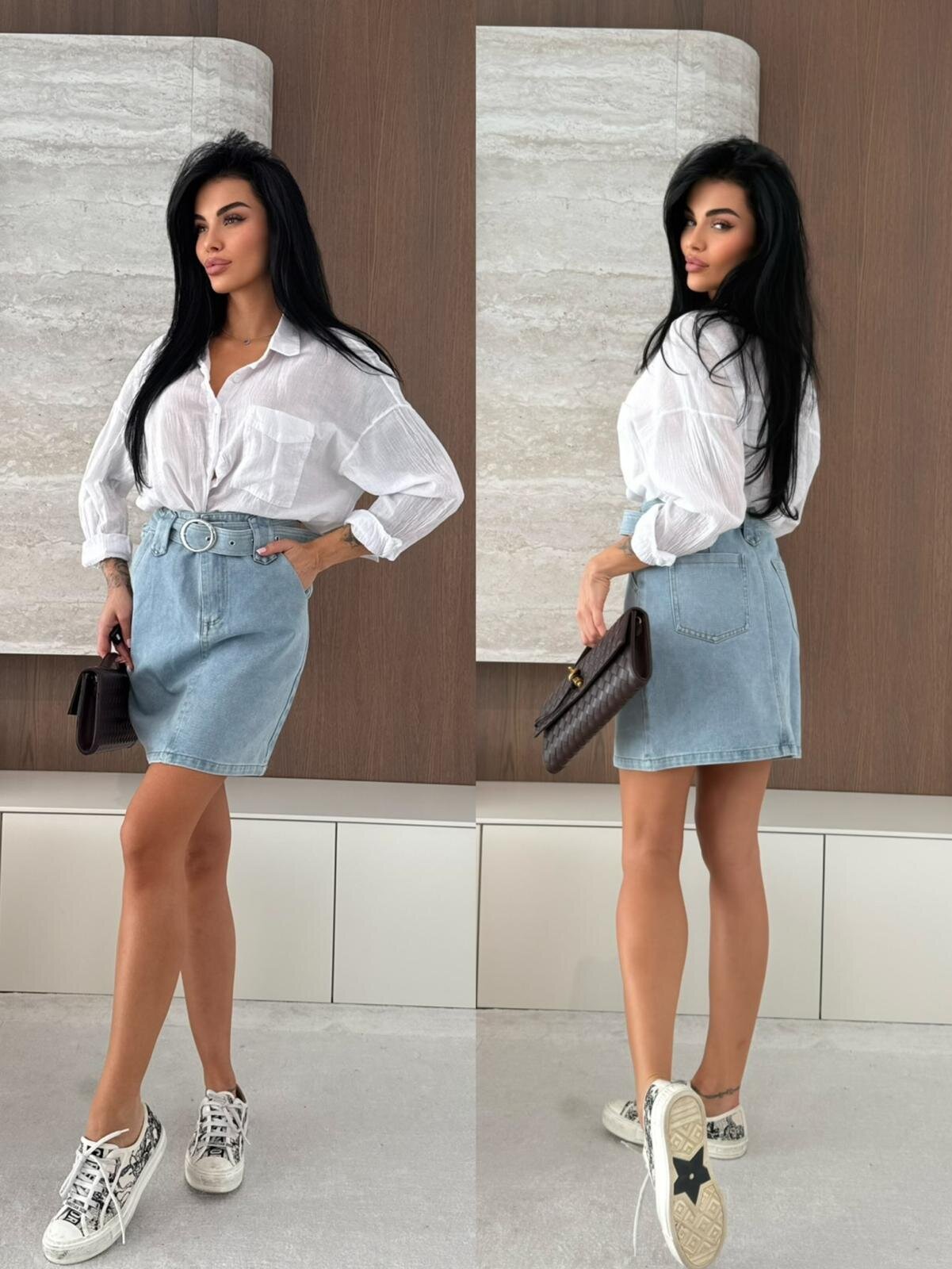 Dodaj stylu do codziennych i casualowych stylizacji z nasz膮 mini sp贸dniczk膮 jeansow膮! Dopasowany fason podkre艣la sylwetk臋, a delikatnie postrz臋piony d贸艂 nadaje lekko rockowego i modnego charakteru. Sp贸dniczka jest idealna na lato i wiosn臋, a pasek w zestawie pozwala na dodatkowe podkre艣lenie talii. 艢wietnie komponuje si臋 z topami, bluzkami i casualowymi koszulami.