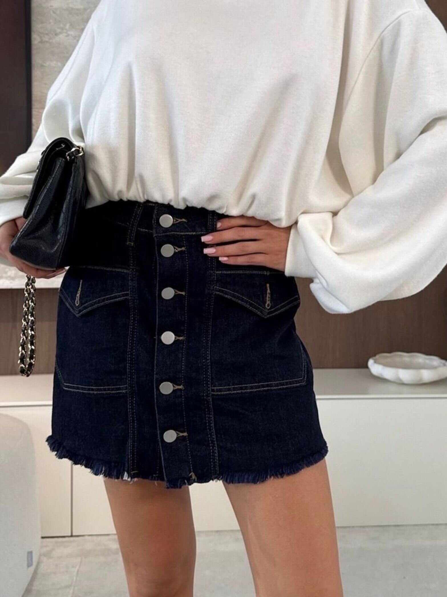 Sp贸dniczko-szorty Alicce to model, kt贸rego nie mo偶e zabrakn膮膰 w Twojej garderobie. Idealnie podkre艣li kobiece kszta艂ty. Ponadczasowe jeansowe wyko艅czenie.