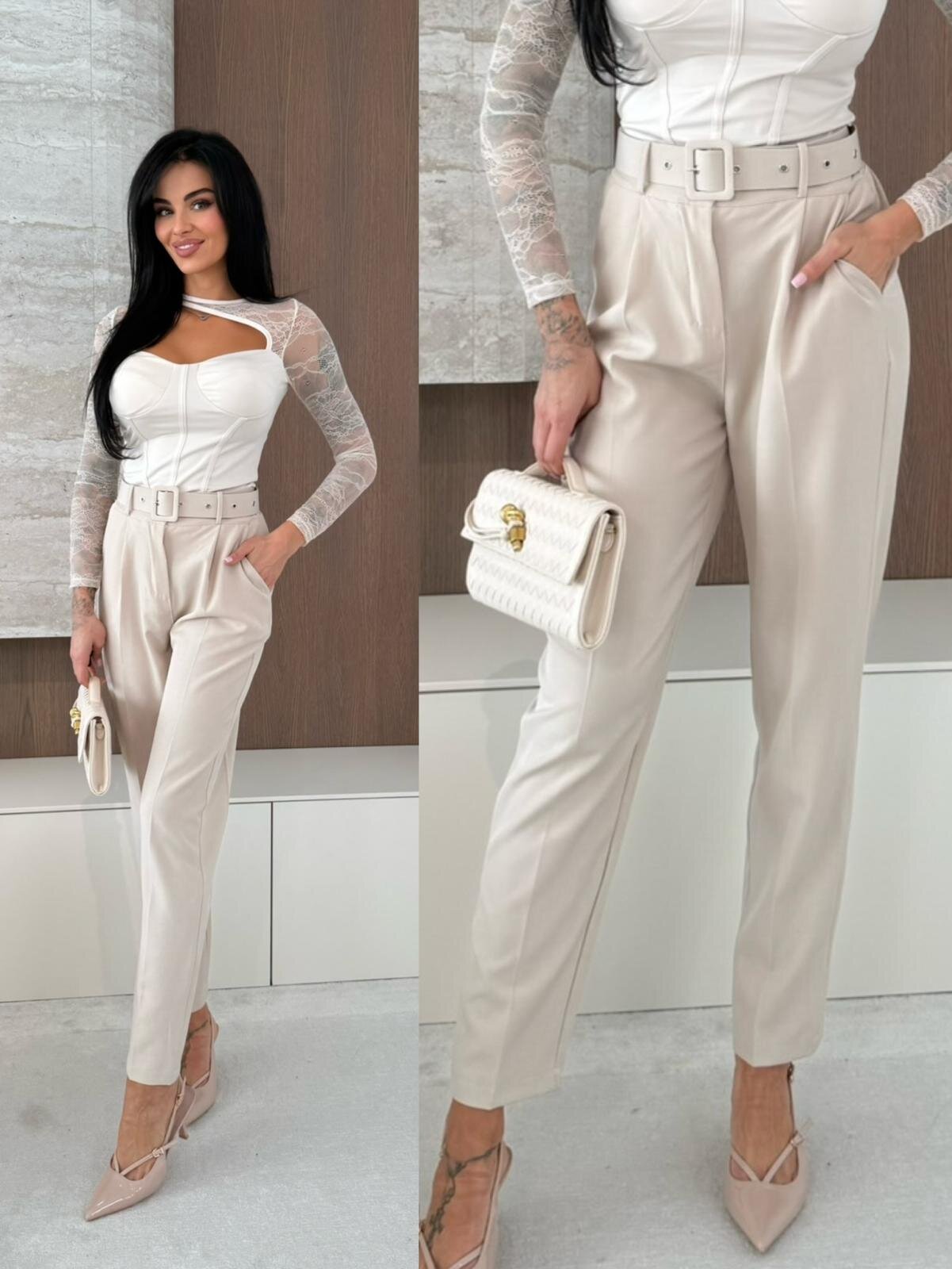 Eleganckie spodnie damskie w kant, kt贸re 艂膮cz膮 klasyczny styl z wygod膮 noszenia. Gumka w pasie zapewnia komfort, a pasek w zestawie pozwala dopasowa膰 je idealnie do sylwetki. Doskona艂e do biura, na spotkania czy eleganckie wyj艣cia, sprawdz膮 si臋 w ka偶dej stylizacji, dodaj膮c szyku i profesjonalnego wygl膮du.