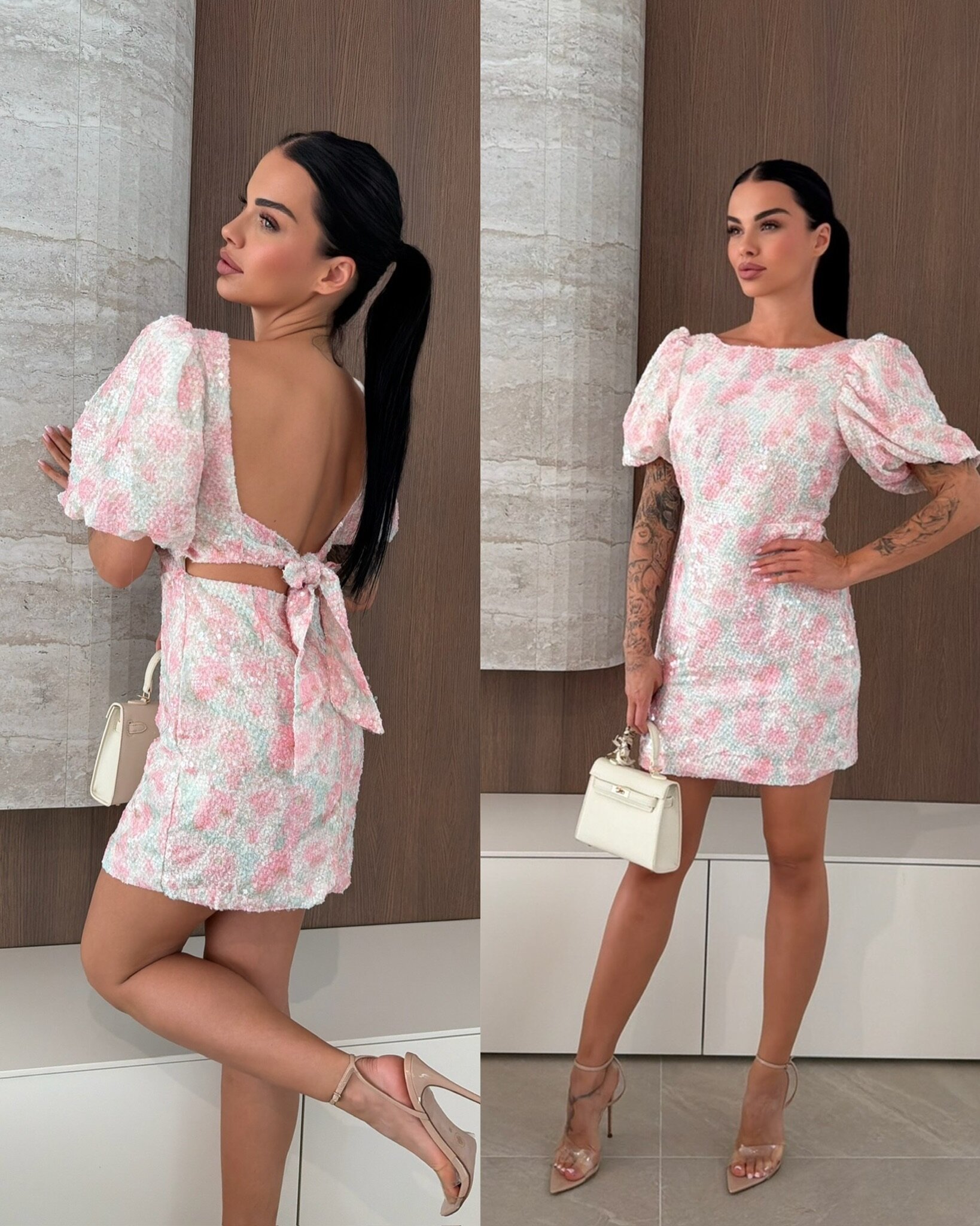 Sukienka Isana mini z cekinami to efektowny wybór na wieczorne wyjścia, imprezy i wyjątkowe okazje. Całość pokryta jest połyskującymi cekinami, które dodają blasku i przyciągają spojrzenia, a bufiaste rękawy nadają sylwetce nowoczesnego charakteru i subtelnej lekkości. Dopasowany fason perfekcyjnie podkreśla talię, podnosząc kobiecy wygląd, jednocześnie zapewniając komfort podczas noszenia.-mini sukienka idealna na imprezy, wieczorne wyjścia i wyjątkowe okazje