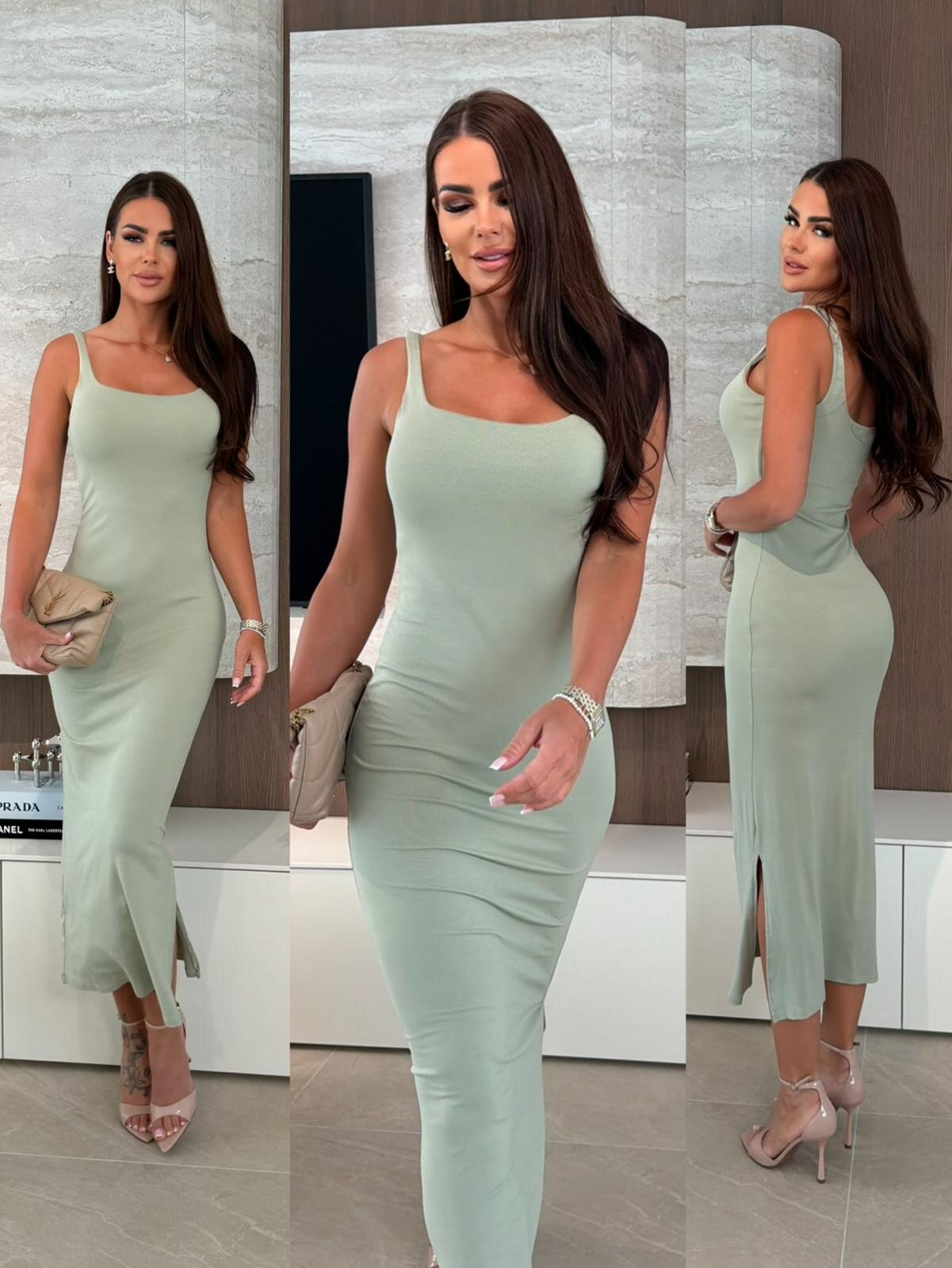 Sukienka Leonora maxi z wiskozą matcha