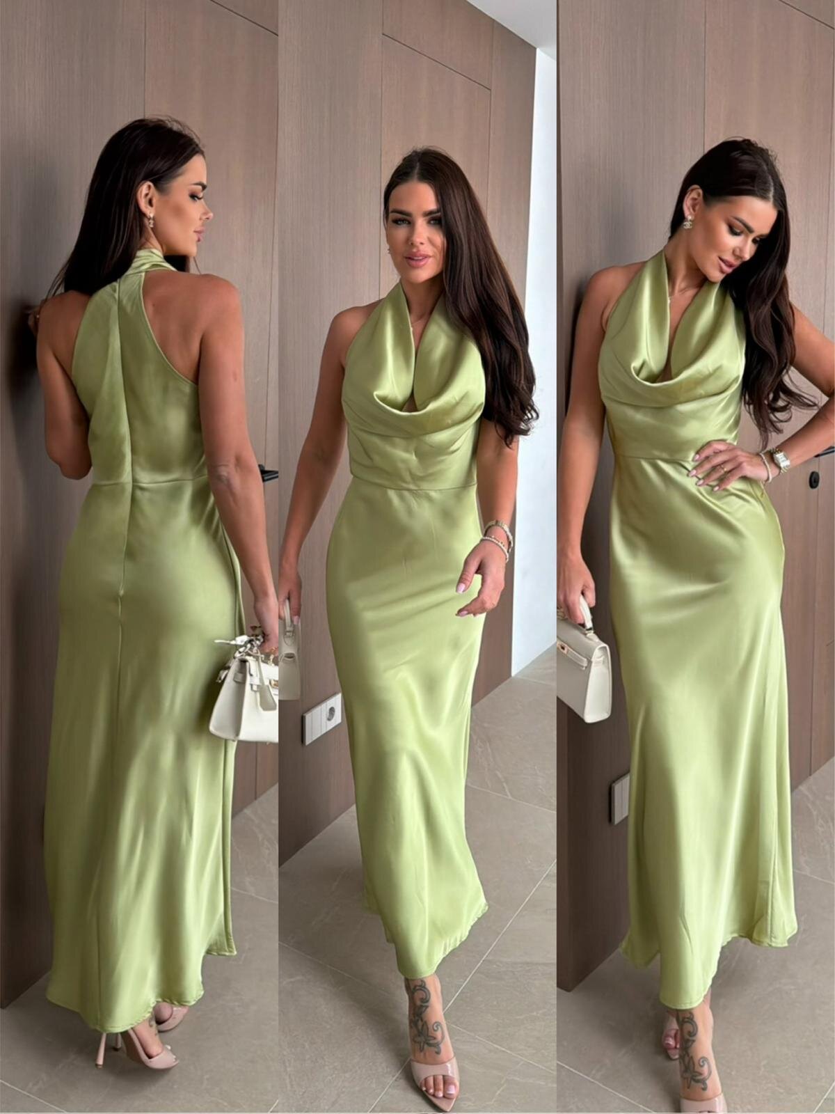 Stylowa dzianinowa sukienka midi to idealna propozycja dla kobiet, które cenią elegancję i komfort. Model z wyeksponowanymi ramionami i lejącym materiałem przy dekolcie nadaje stylizacji lekkości i subtelnego szyku. Satynowe wykończenie dodaje elegancji, a zamek z tyłu zapewnia wygodne dopasowanie. Ta sukienka midi doskonale sprawdzi się na specjalne okazje i eleganckie wyjścia.
