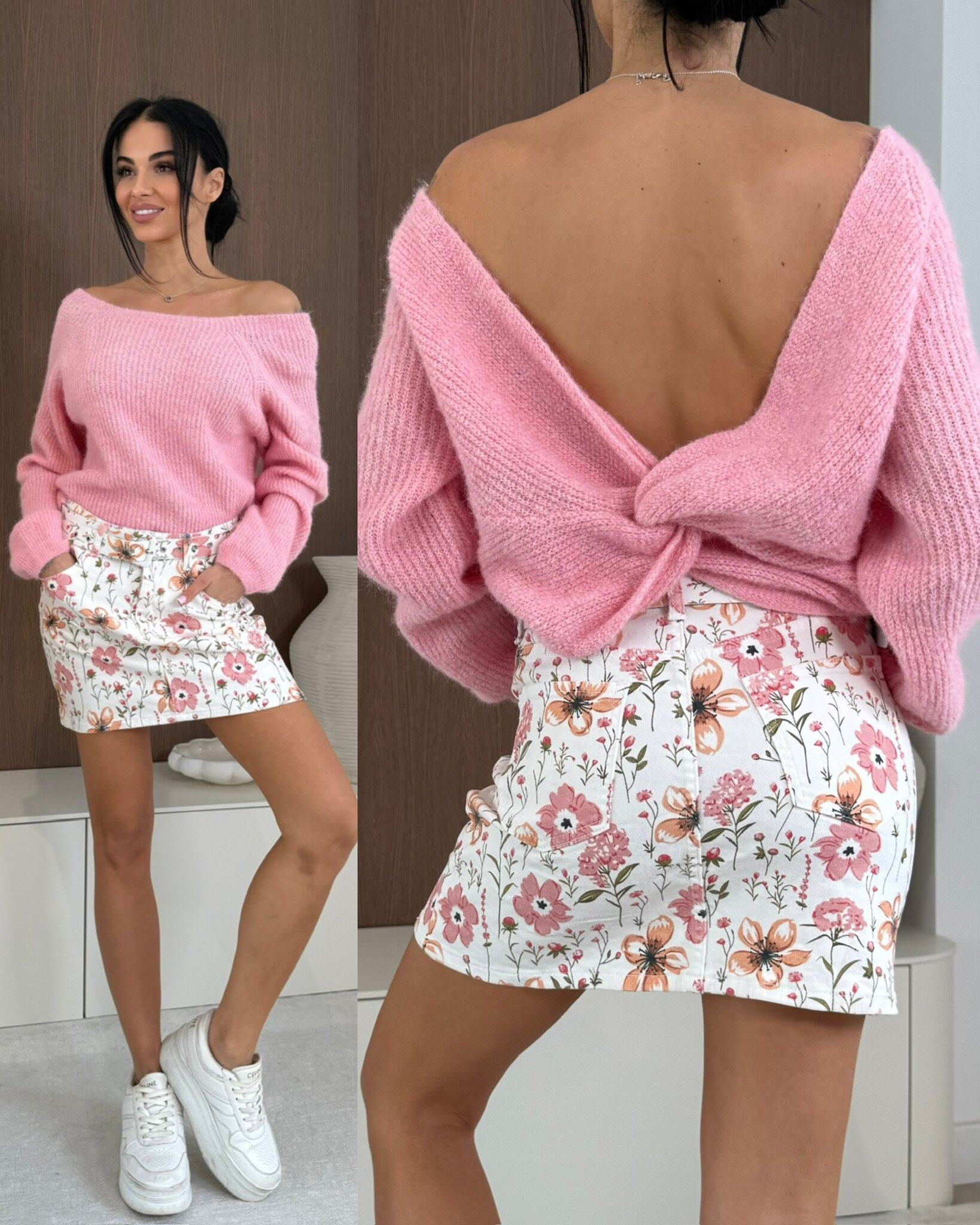 Stylowy sweter damski z dzianiny o modnym kroju z efektownym skrętem z przodu. Model wykonany z przyjemnego w dotyku materiału z domieszką wełny, który zapewnia komfort noszenia i ciepło. Idealny do codziennych stylizacji oraz bardziej eleganckich zestawów, świetnie podkreśla sylwetkę i wpisuje się w aktualne trendy.