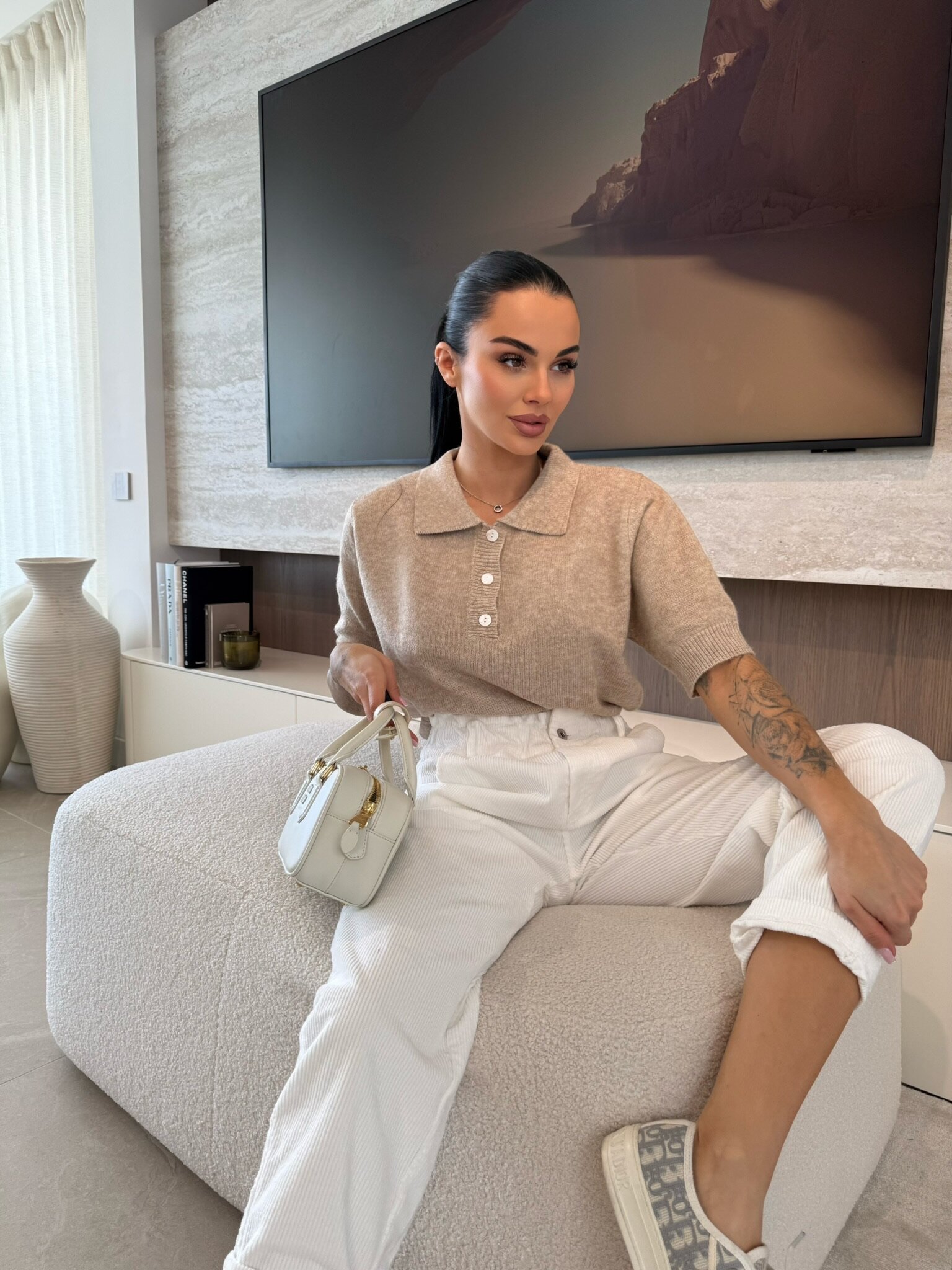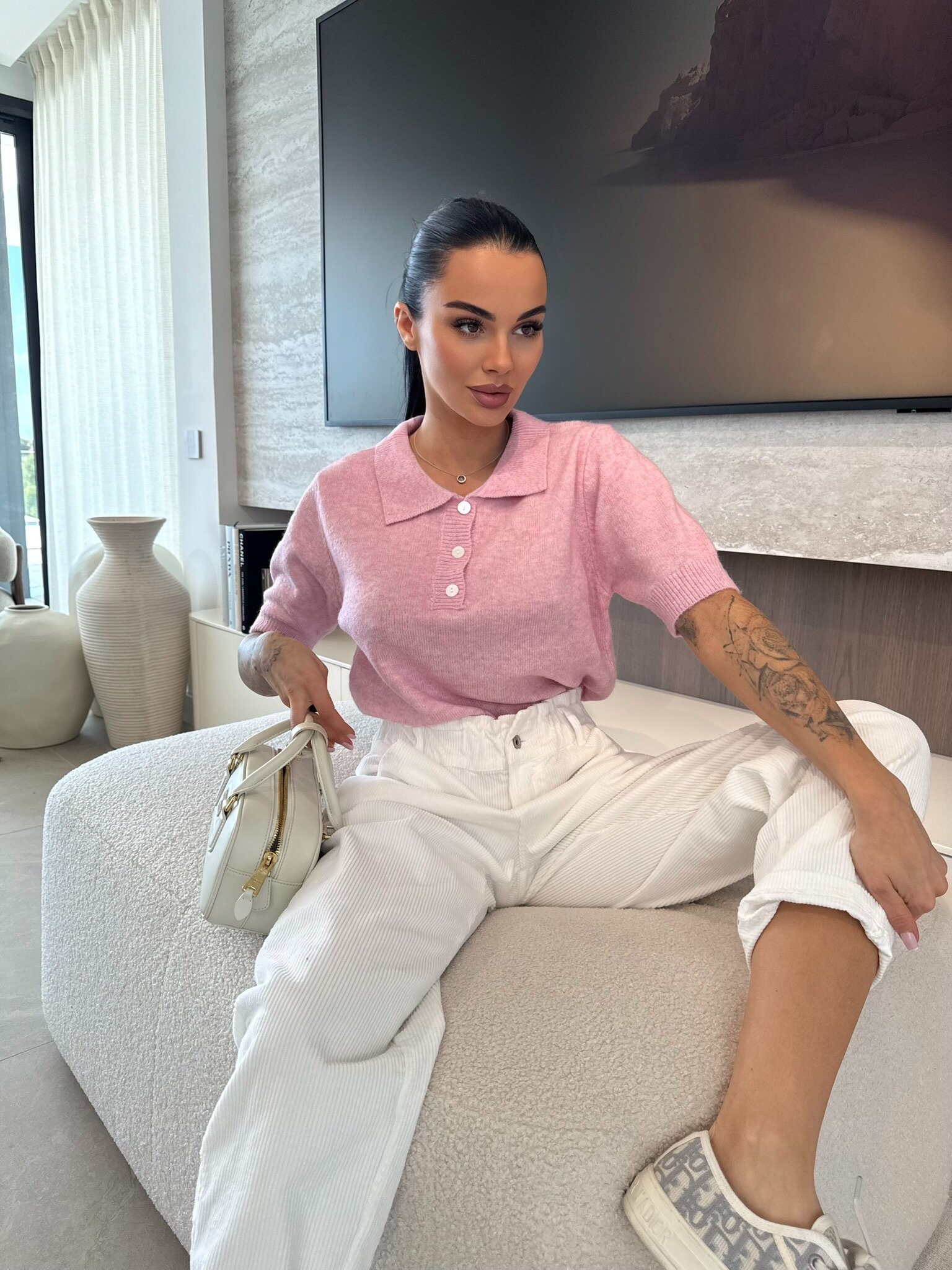 Stylowy sweter dzianinowy z kołnierzem to uniwersalny element garderoby, który doskonale sprawdzi się w codziennych stylizacjach oraz bardziej eleganckich zestawach. Klasyczny fason z z kołnierzykiem, podkreśla sylwetkę i zapewnia wygodę noszenia przez cały dzień. Idealny wybór do pracy, na spotkania oraz na co dzień.