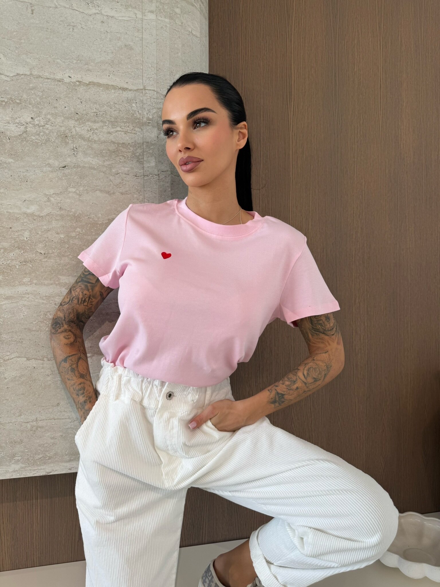 Wykonanie z miłej tkaniny, krótszy krój. Zdobienie w postaci serduszka. Zabudowany dekolt.